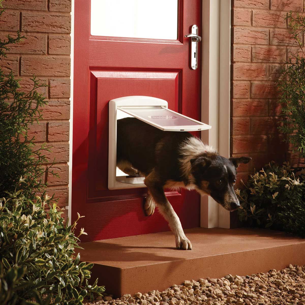 Die PetSafe Hundeklappe Staywell 740 ist eine stabile Kunststoff-Hundetür mit selbstschließender, fester Magnetklappe.