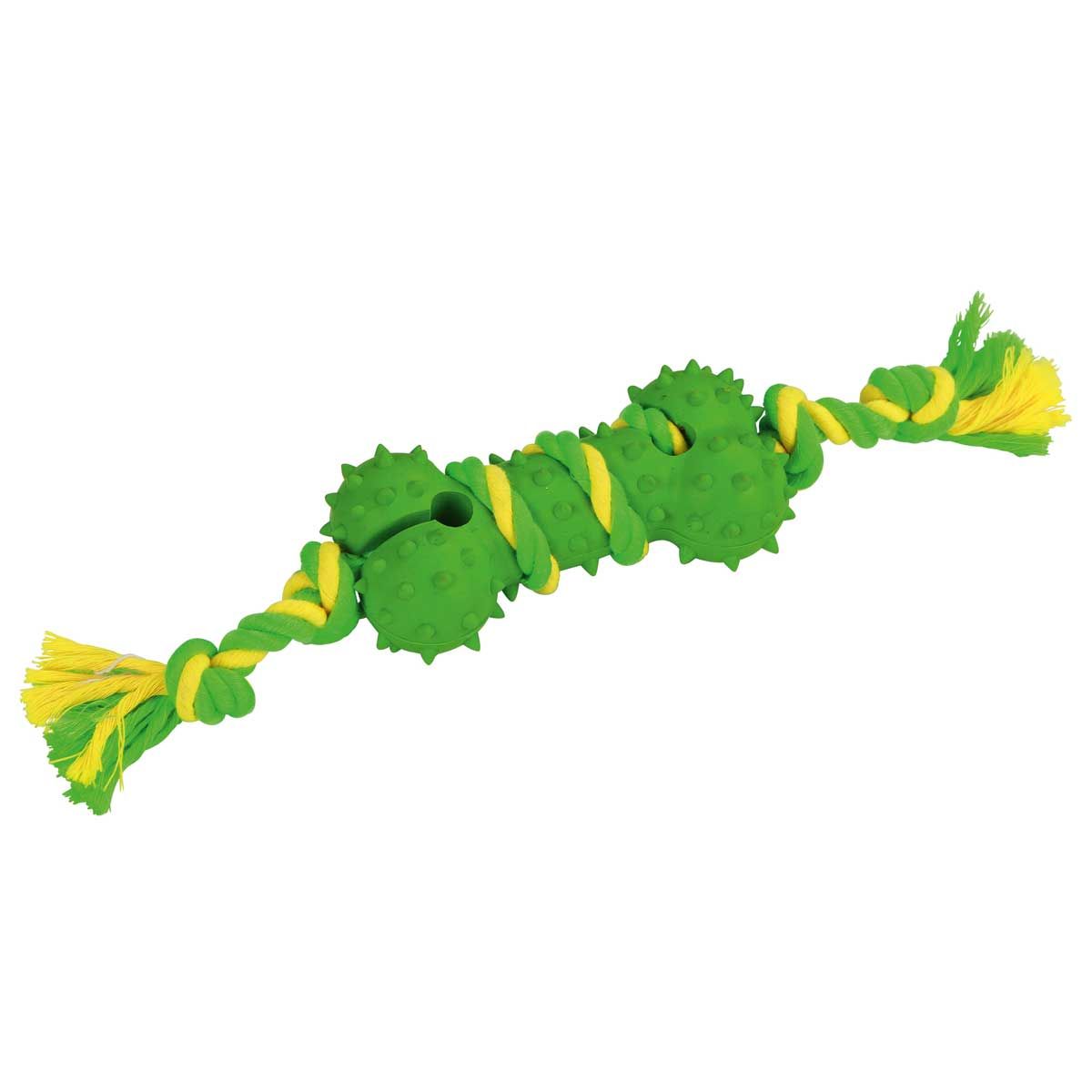 Die Kombination aus robustem Gummi und weicher Baumwolle bietet deinem Hund ein abwechslungsreiches Kau- und Spielgefühl. So wird Langeweile erst gar nicht aufkommen.