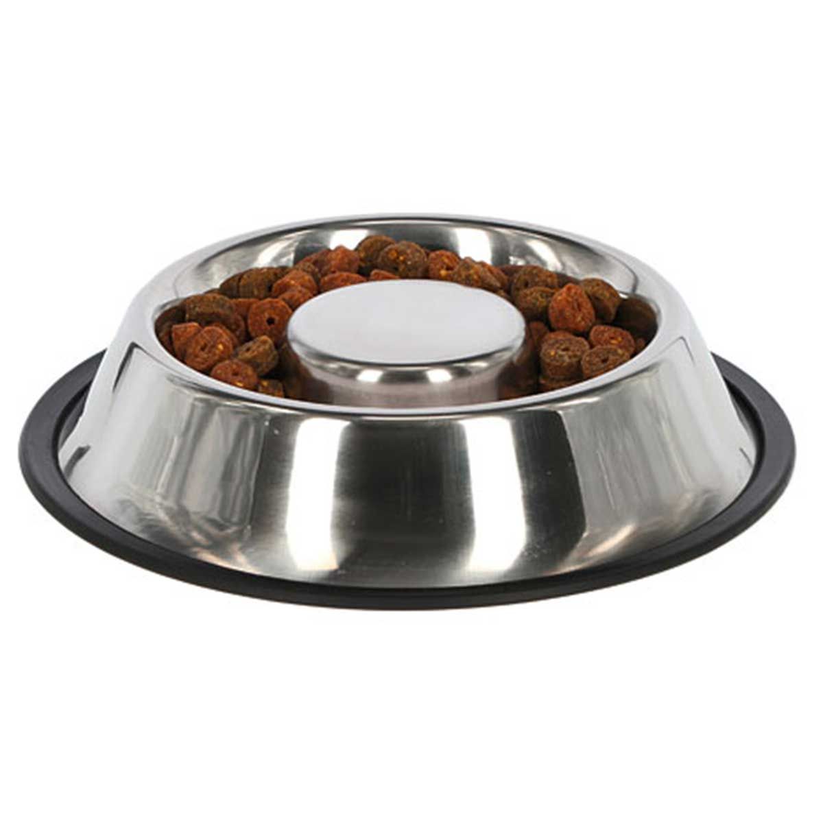 Edelstahlnapf Anti DribbleSchmatzen und schlürfen erlaubt! Durch die Erhebung in der Mitte des Hundenapfs wird hastiges Fressen oder Trinken ihres Hundes reduziert und somit auch das Kleckern. Keine lästigen Spuren mehr von Mahlzeiten neben dem Fressnapf