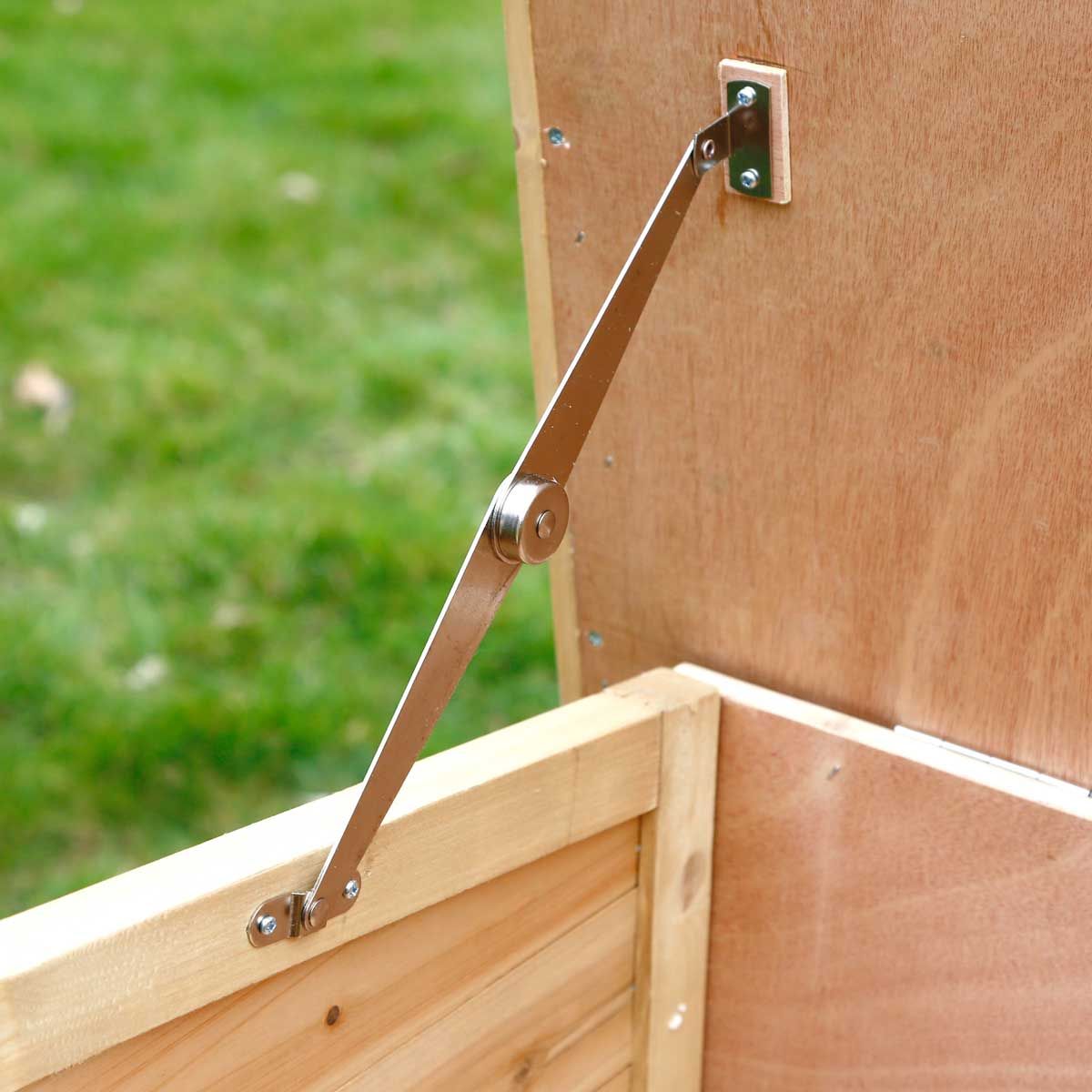 - aufklappbares, wetterfestes Kunststoffdach mit Dachfixierung am Hauptdach