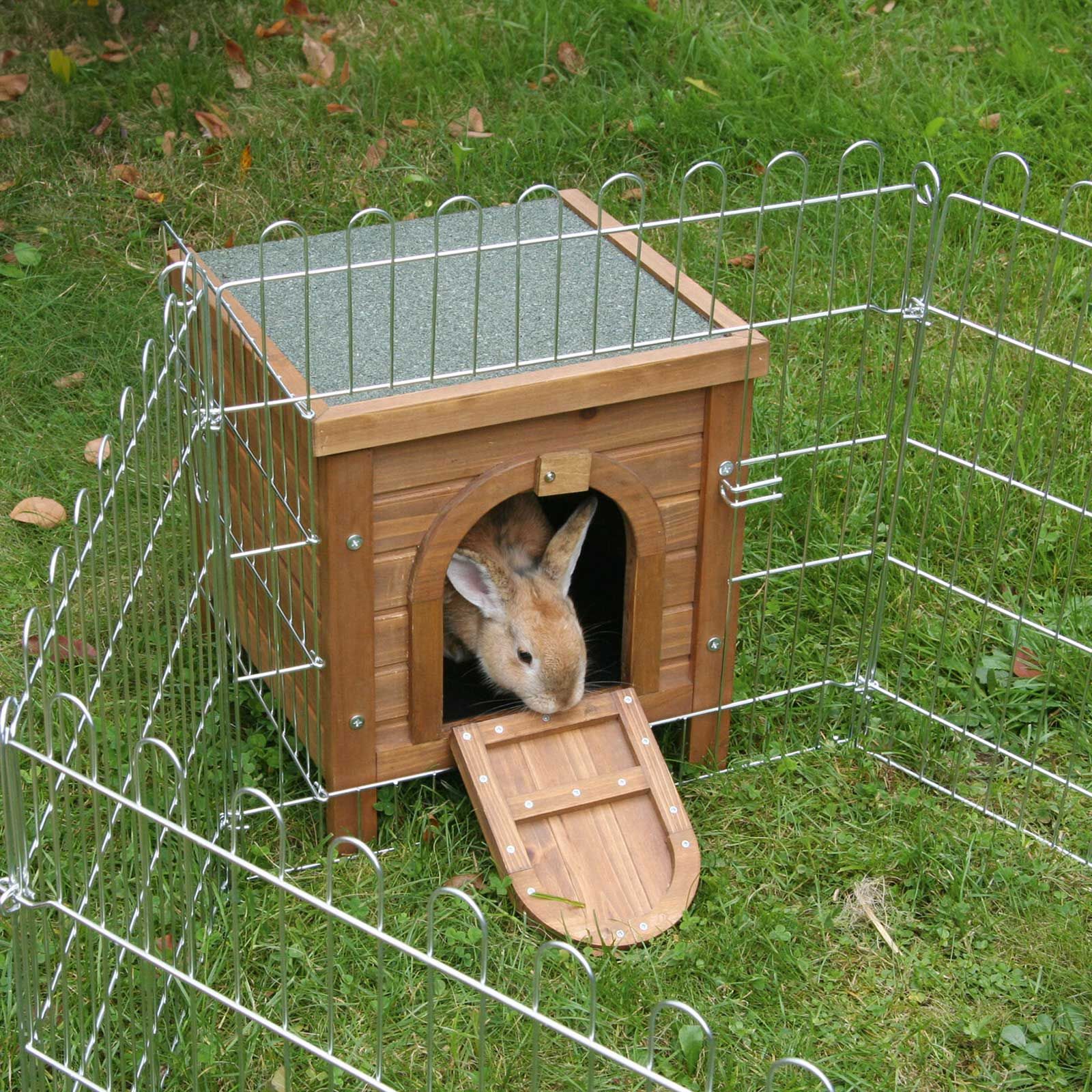 Hinweis: Um die Lebensdauer des Stalles zu verlängern, sollten Sie das Holz mit geeignetem Anstrich nachbehandeln. Der beste Standplatz ist unter einem Vordach an der Wetter abgewandten Seite. Achten Sie bei der Auswahl der richtigen Größe auf die länderspezifischen Tierschutznormen!