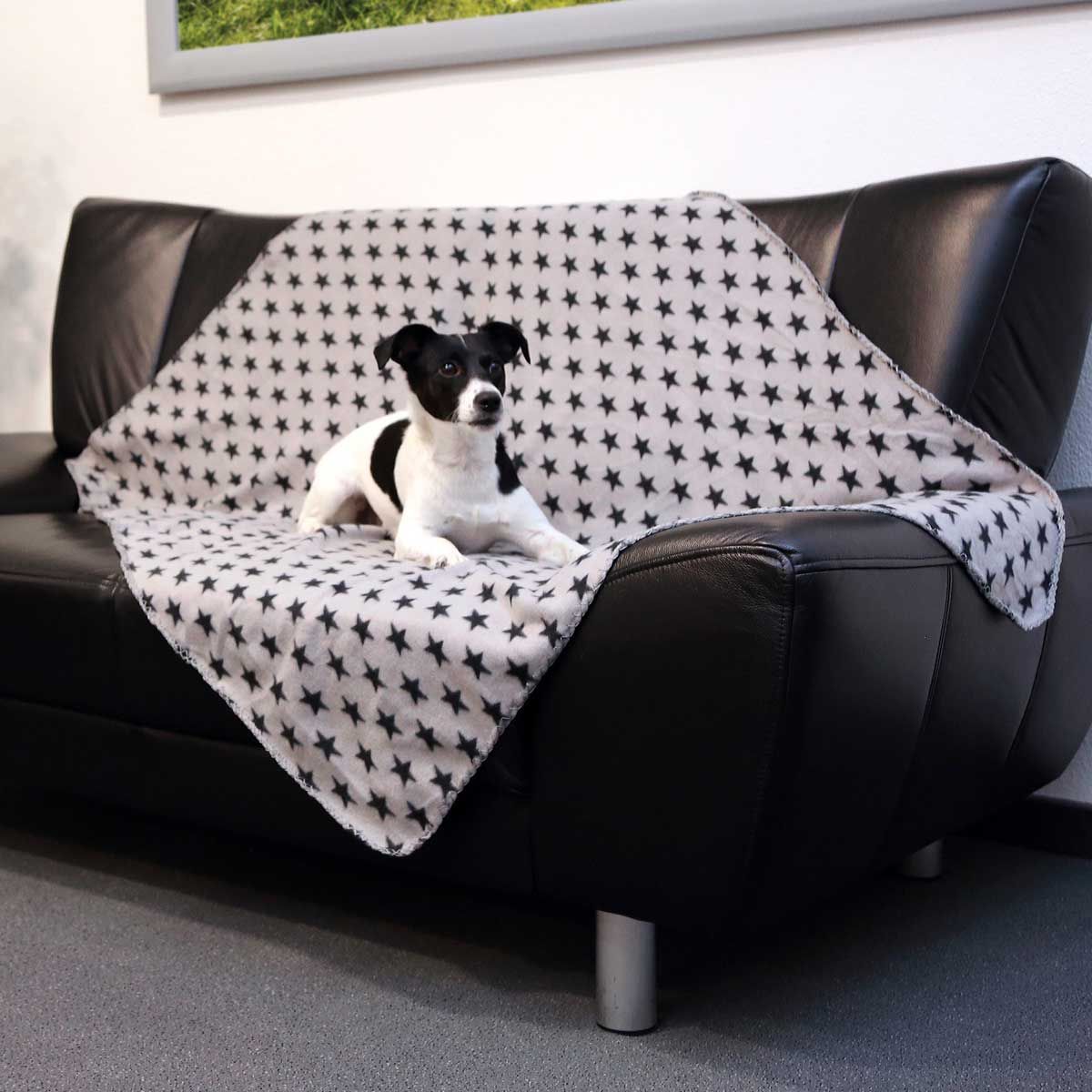 Dank des niedlichen Sternenmotivs sieht die Decke nicht nur gut aus, sondern fügt sich auch harmonisch in dein Zuhause ein. Die einfache Pflege mit 30°C Wäsche macht die Decke zu einem unkomplizierten Begleiter im Hundealltag.