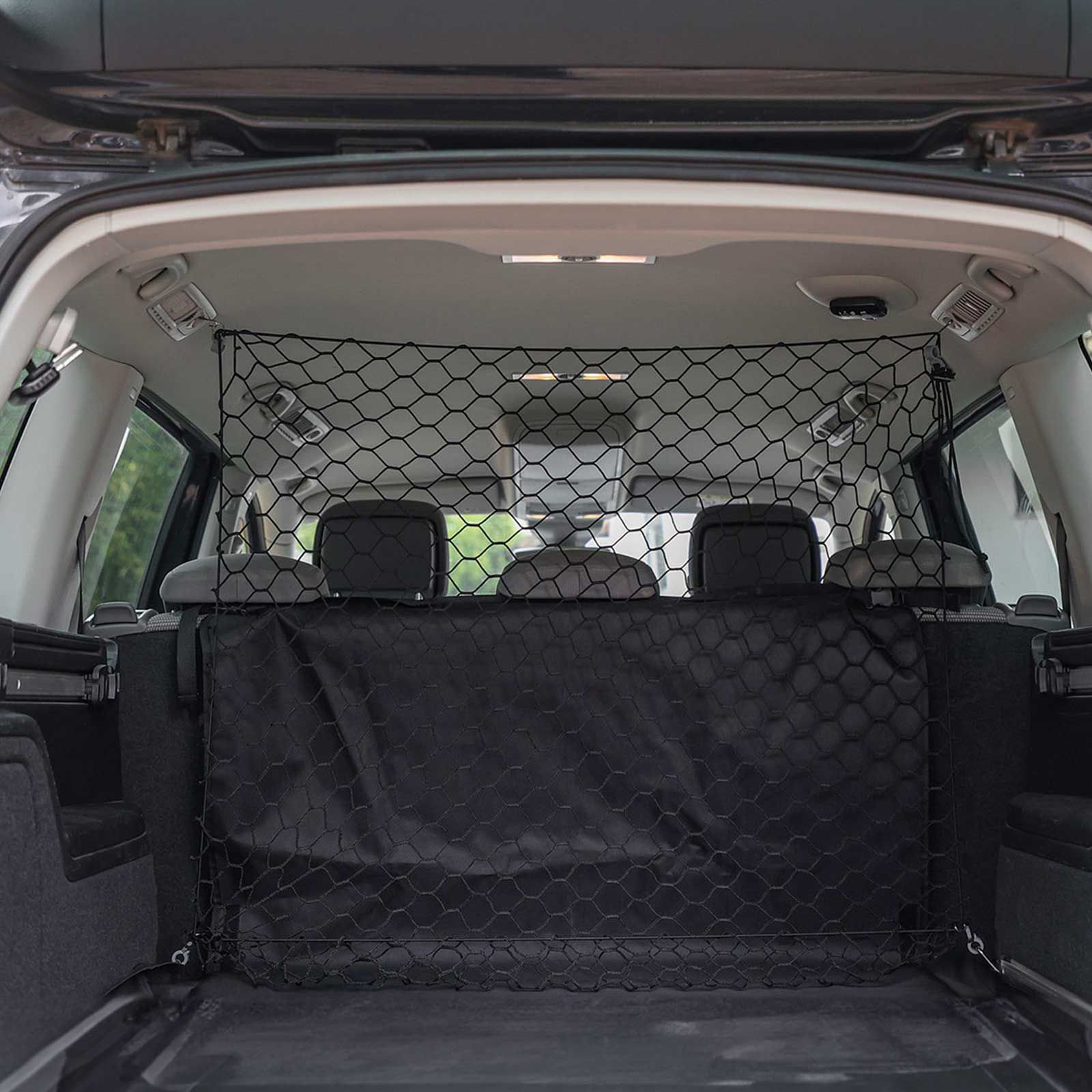 Dieses Autonetz besteht aus Nylon und dient der Sicherheit von Mensch und Tier während der Fahrt. Damit Tiere und Gegenstände auf der Rückbank bzw. Ladefläche oder im Kofferraum bleiben, ist das Autonetz aus starkem Nylon genau das Richtige.