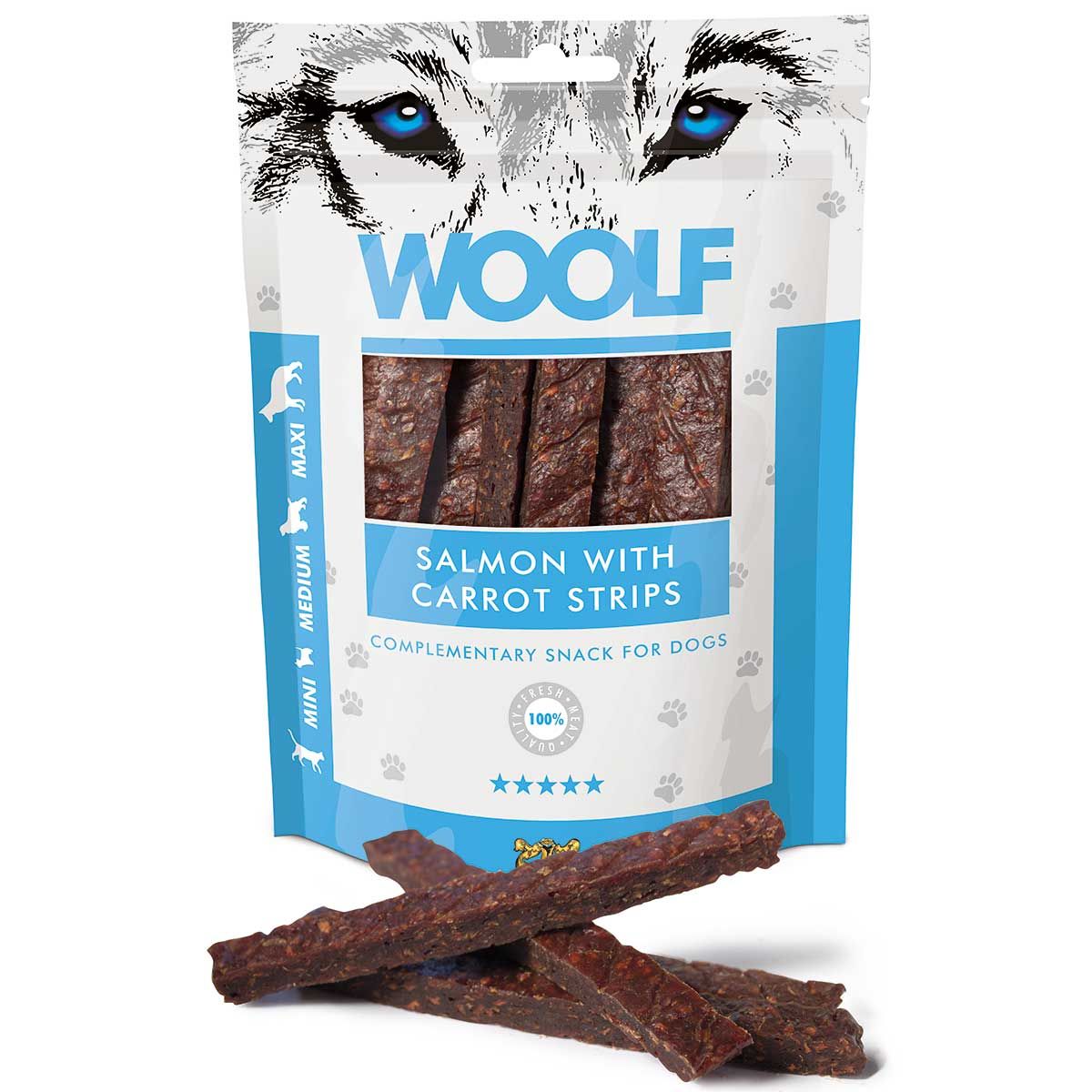 Woolf Hundeleckerli Lachsstreifen mit Karotten