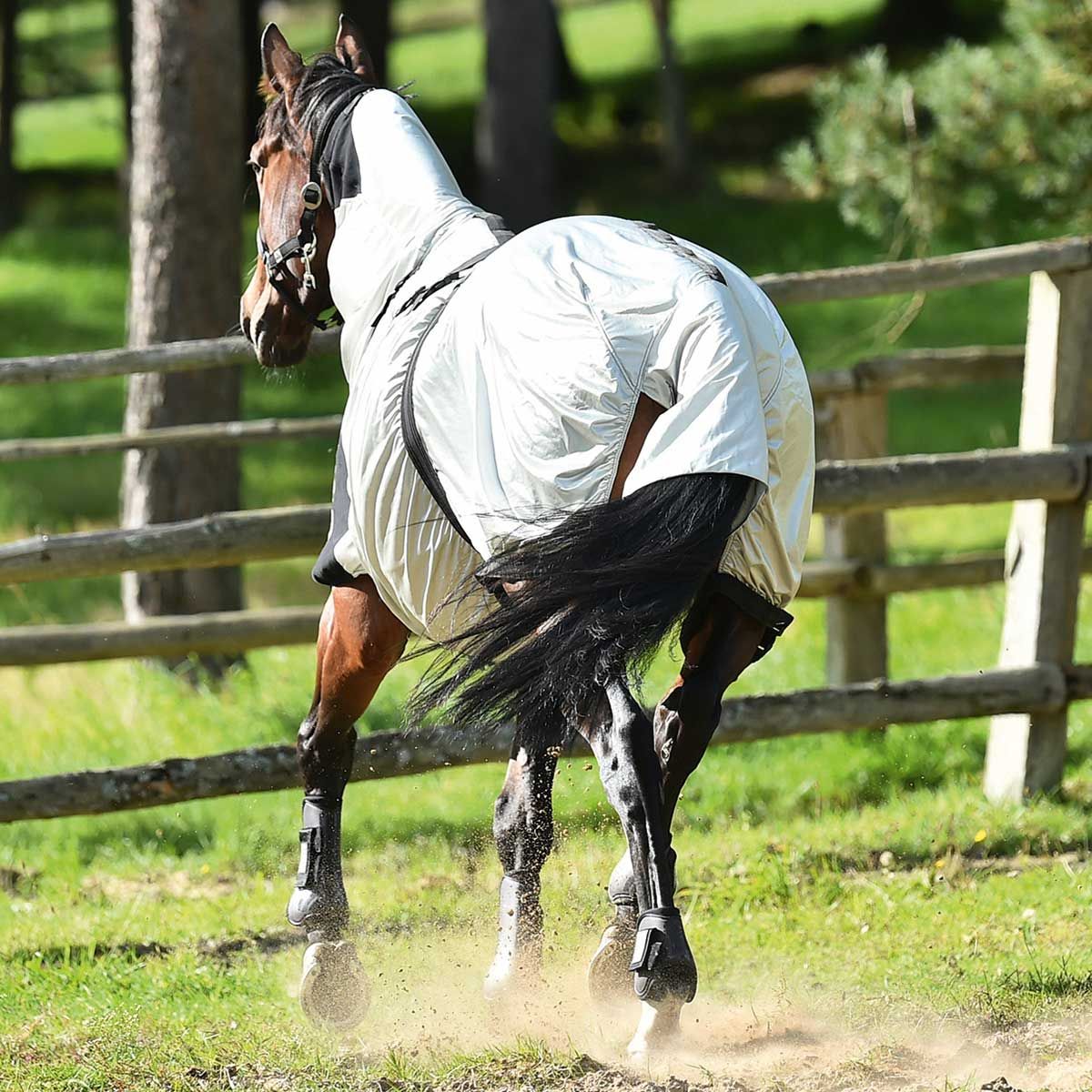 Spezielle Schutzdecke für Pferde mit Sommerekzem.