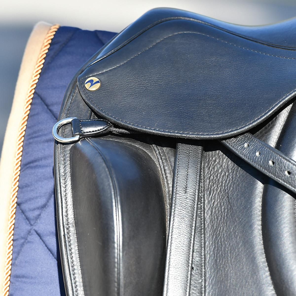 Stabile D-Ringe mit runder Nylonschlaufe flexibel anzubringen, z.B. an den Sturzfedern des Sattels um die Vorderzeugfallringe zu ersetzen oder zu ergänzen zwecks Befestigung von Vorderzeugen, Hilfszügeln, Sattelanfassriemen oder Airbagwesten.