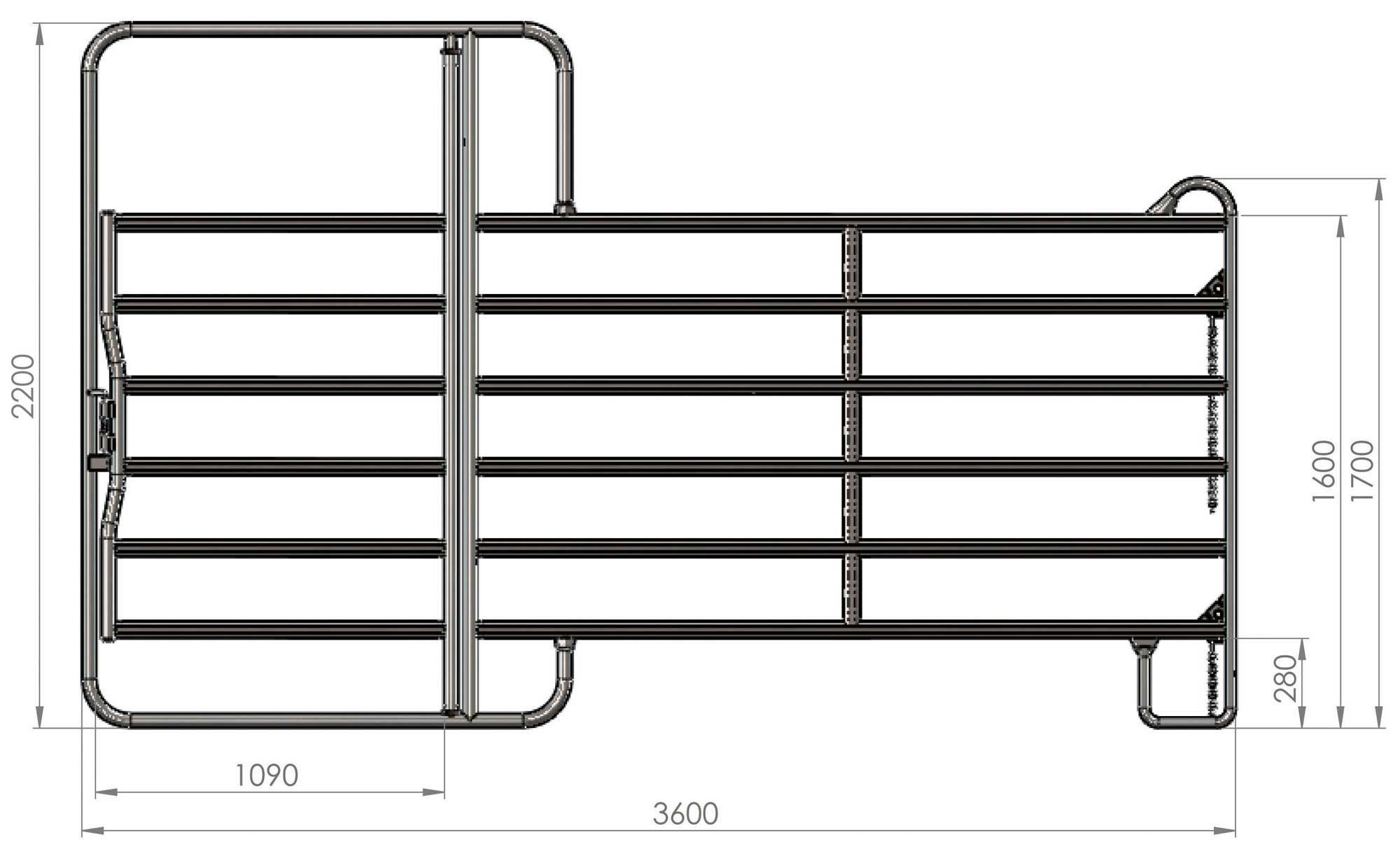 Das Weidepanel mit Tor ermöglicht den Einbau eines Durchgangs in die Einzäunung. Der Verschlussriegel dient zum Öffnen und Schließen der Einzäunung.