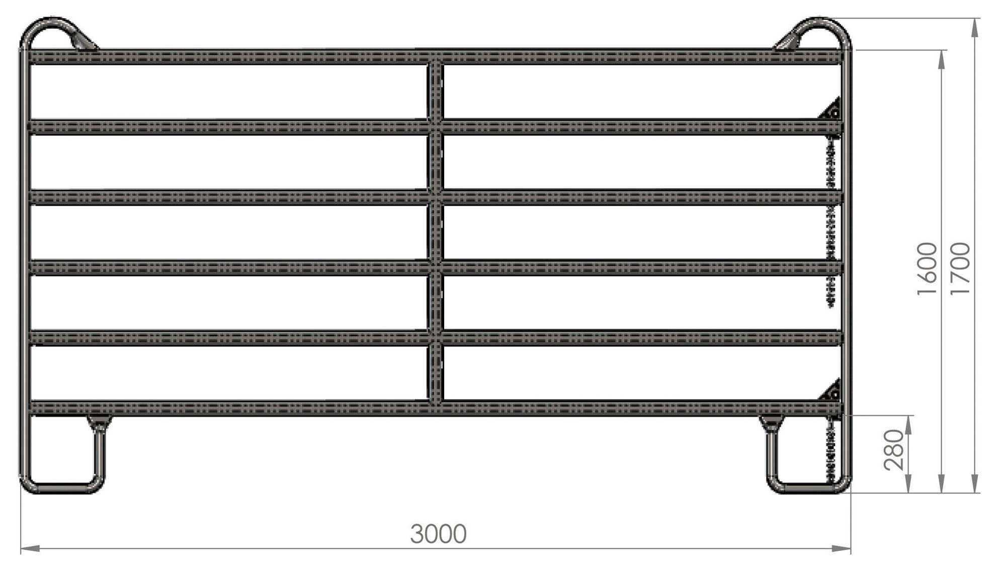 Das Weidepanel ohne Tor eignet sich ideal zum Bau mobiler und flexibler Einzäunungen, sowie von provisorischen Boxen und Stallungen. Es wird auch sehr gerne verwendet für die Einzäunung von Reitzirkeln und Longierplätzen. Der Sicherheits-Aufsprungbügel verhindert Verletzungen der Tiere. Beim Aufspringen auf das Panel kommt das Tier nicht zwischen die Panele. Es hat einen sehr guten und sicheren Stand durch einen U-förmigen Fuß. Der Schnell-Kettenverschluss erleichtert und beschleunigt das Verbinden mehrerer Panele.