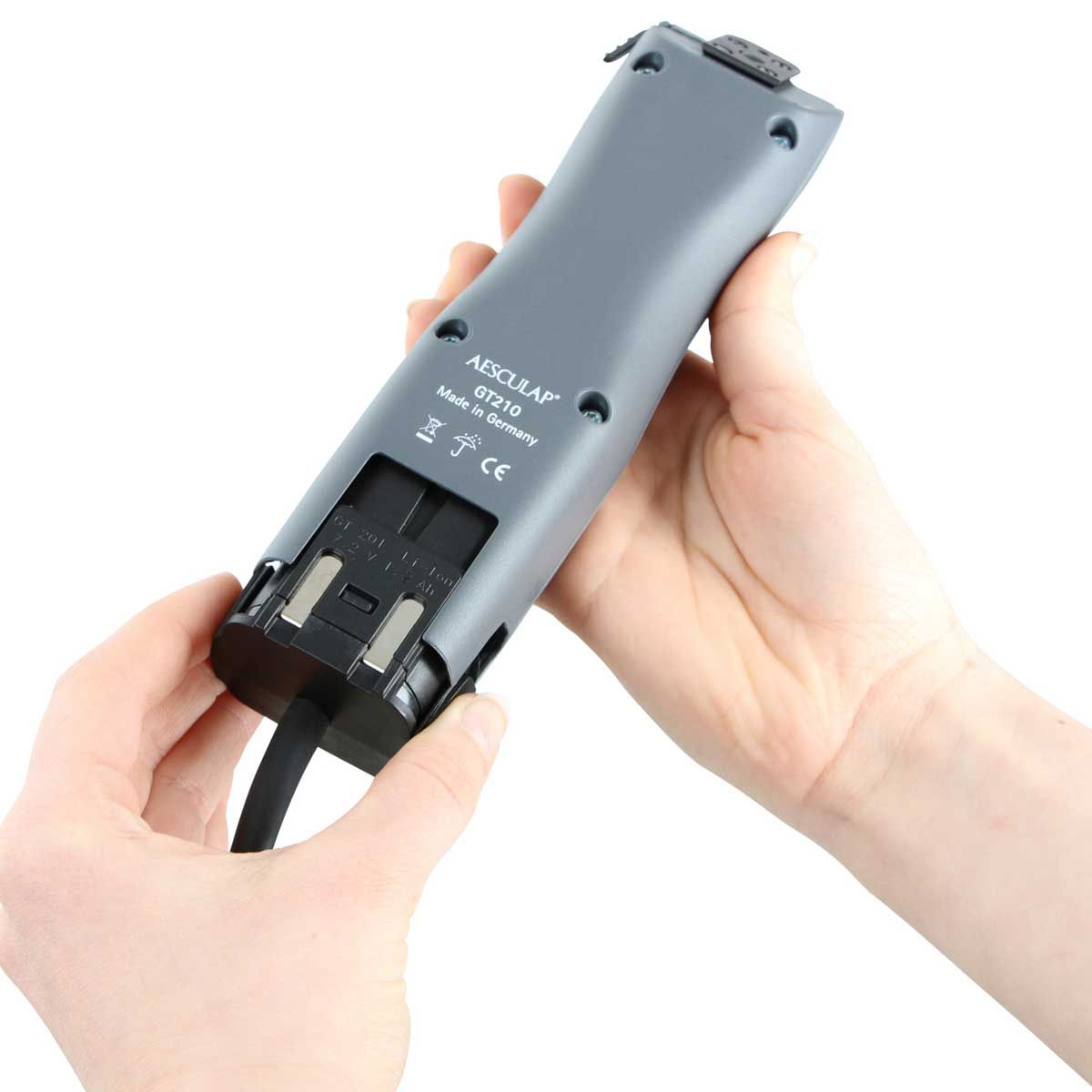 Die Hunde-Schermaschine von Aesculap ist nahezu komplett vibrationsfrei im Betrieb. Dies ermöglicht ein ermüdungsarmes Arbeiten über einen langen Zeitraum. Durch das schlanke, ergonomische Design liegt der Trimmer sehr angenehm in der Hand. Der Schalter im hinteren Bereich der Maschine verspricht einen komfortablen Einhandbetrieb. Mit Adapter GT207 wird Ihre batteriebetriebene Schermaschine ganz einfach zur kabelgebundenen Ausführung. Einfach anstelle des Akkus den Adapter einstecken und schon genießen Sie einen unterbrechungsfreien Betrieb (Der Adapter ist nicht im Lieferumfang enthalten).