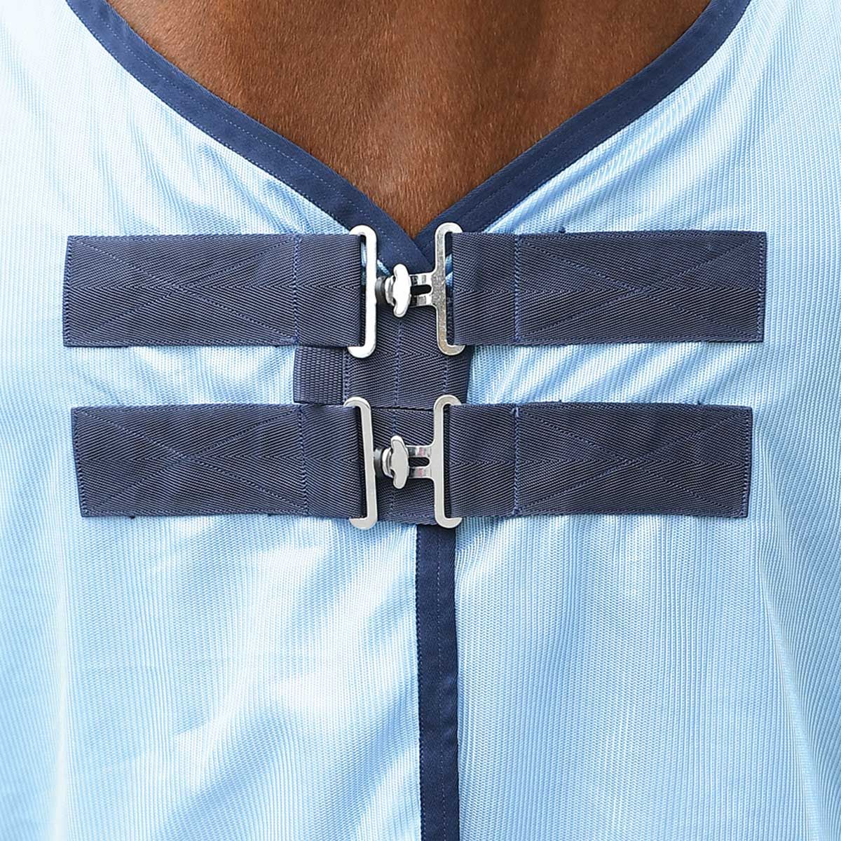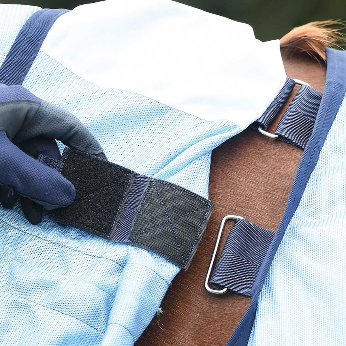 Für die endgültige Anpassung einer Pferdedecke sollten die Einstellmöglichkeiten am Produkt genutzt werden, da falsches Anlegen zu Schäden führen kann. Selbst bei optimaler Anpassung ist eine regelmäßige Kontrolle der Passform unerlässlich. Überprüfe, ob die Decke korrekt sitzt, die Klettverschlüsse sauber sind (um Scheuerstellen zu vermeiden) und die Decke intakt ist.