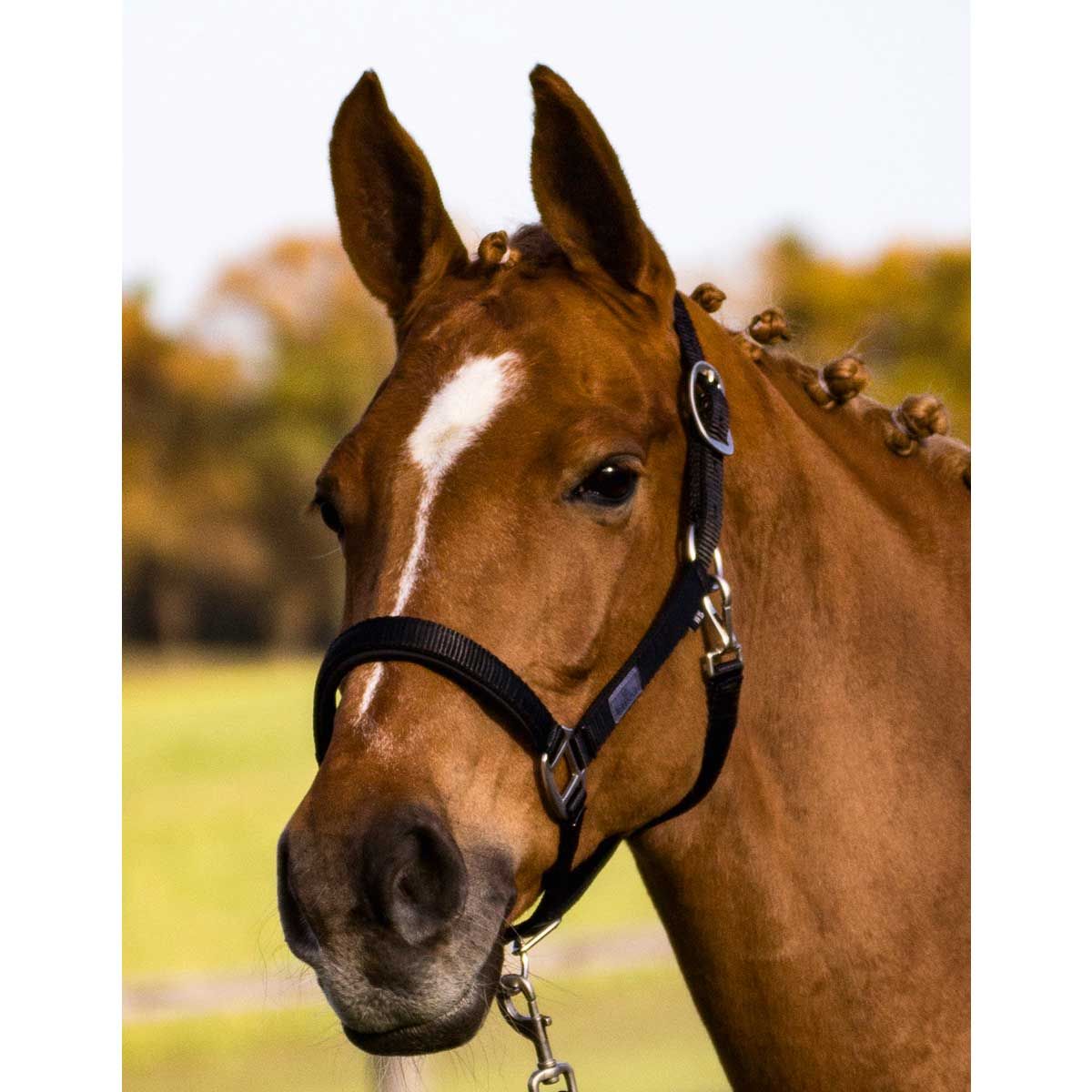 Gepolstertes und langlebiges doppelt bzw. dreifach gelegtes Gurthalfter für gehobene Ansprüche.