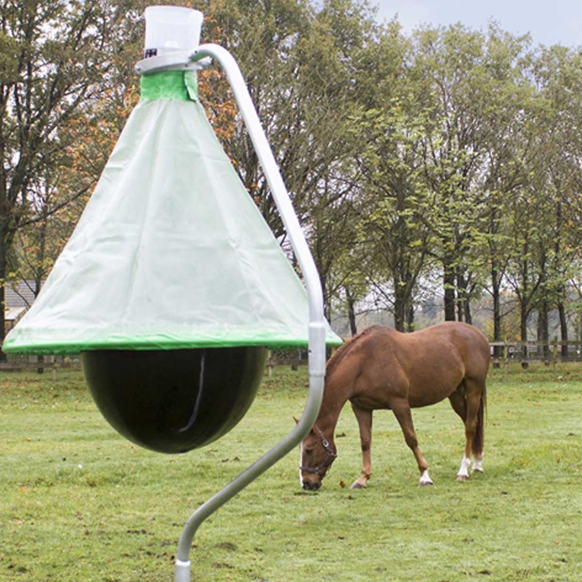 Mit der hochwirksamen Bremsenfalle H-Trap schützen Sie sich und Ihre Tiere vor den aggressiven Bremsen. Die Falle wird im Außenbereich aufgestellt: Das sollte idealerweise dort sein, wo die Insekten verstärkt auftauchen - meist in der Nähe von Gewässern. Es kommen keine chemischen Lockstoffe oder Köder zum Einsatz.