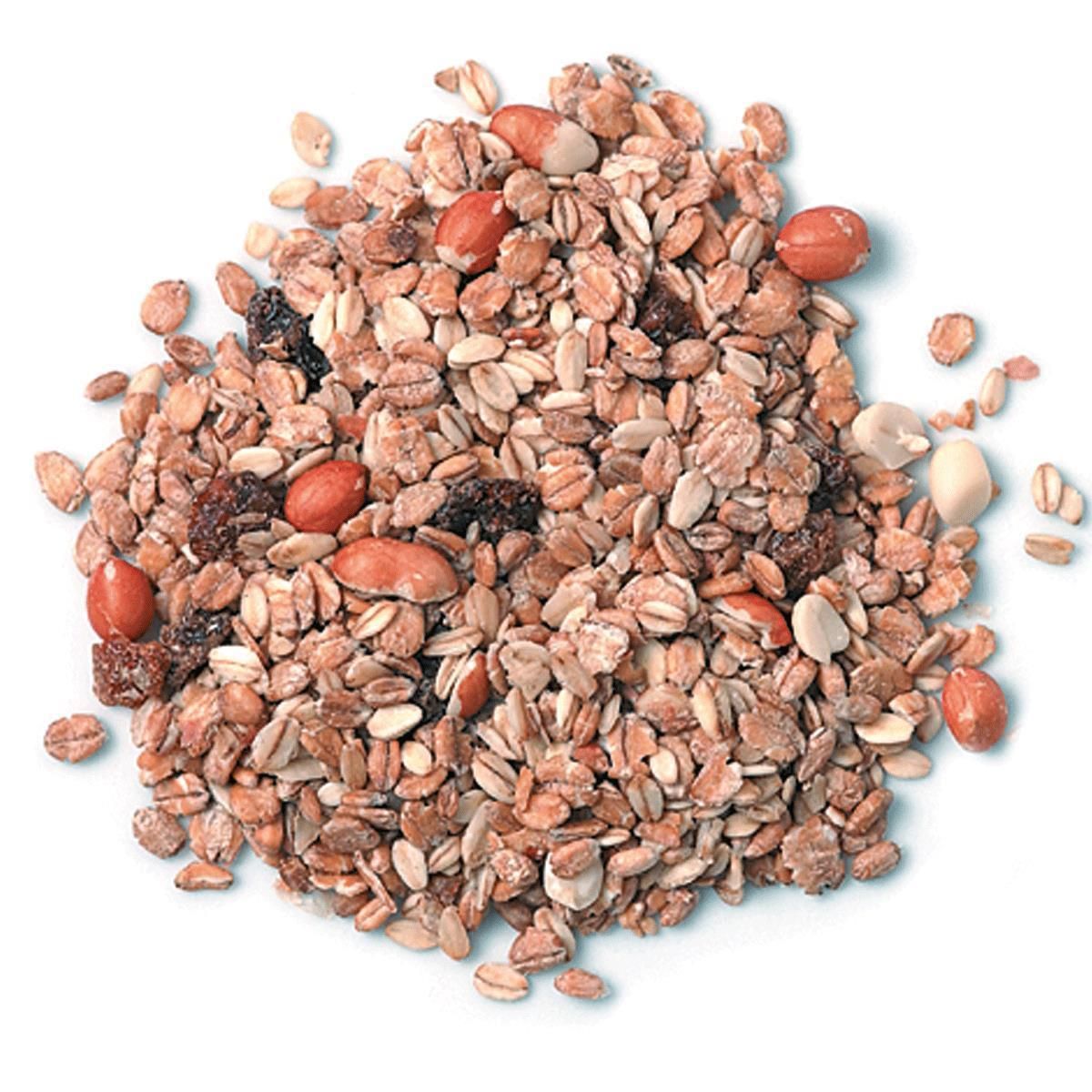 - Gefettete Flocken, Erdnüsse und Rosinen