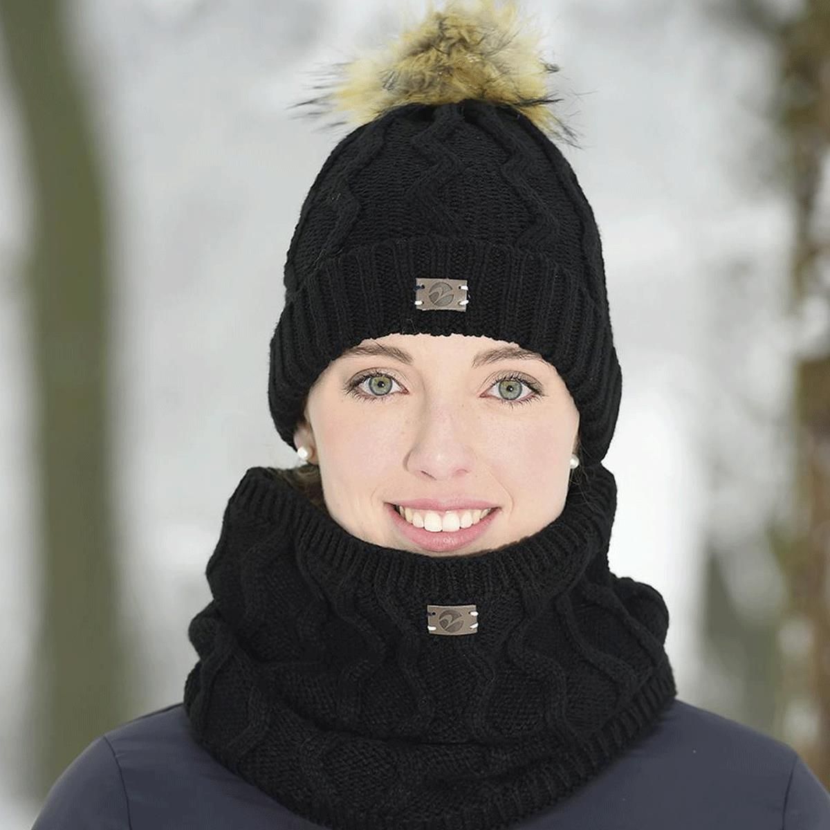 - modische und zugleich wärmende Mütze mit Kunstfell-Bommel