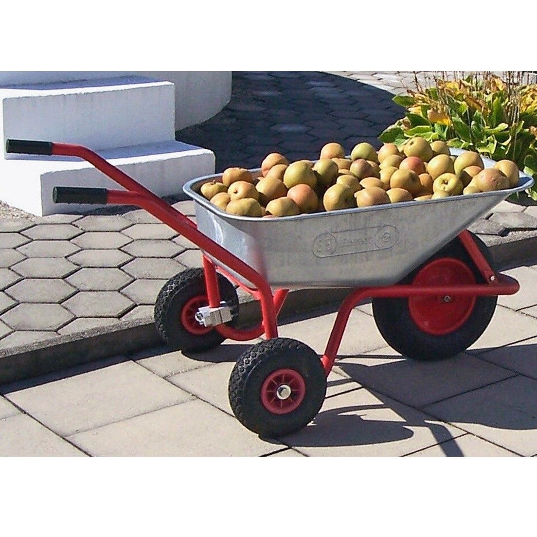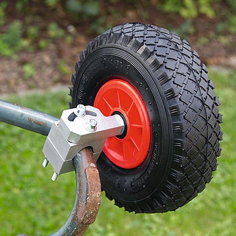 Sie erhalten hier eine aus zwei Stützrädern bestehende Rädergarnitur zum Nachrüsten an jeden handelsüblichen Garten- und Bauschubkarren, auch bei älteren und bereits im Gebrauch befindlichen Schubkarren. Mit den zusätzlichen Stützrädern an den hinteren Standholmen kann die Schubkarre - besonders mit schwerer Last - ohne Anstrengung geschoben werden. Dies entlastet Rücken und Arme und erleichtert den Arbeitsalltag spürbar Optimal für Garten, Landwirtschaft und Bauwesen geeignet. Einfachste Montage durch mitgelieferte Befestigungsschellen, dadurch keine Bohrungen notwendig.