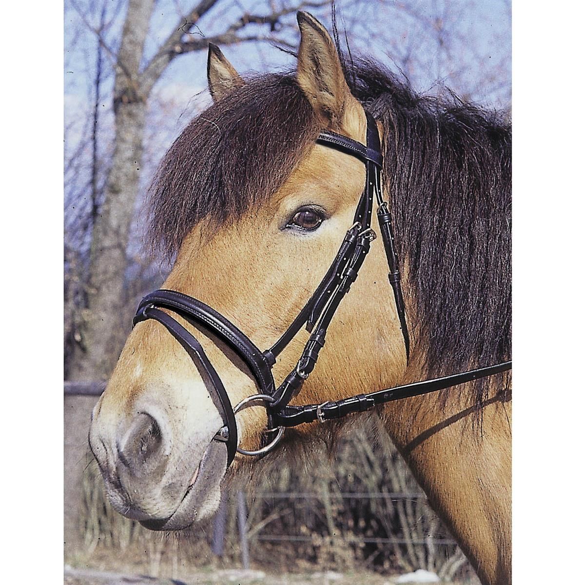 Sie erhalten hier einen englisch kombinierten Reithalfter mit Sperrriemen in einer guten Standardqualität. Der Zaum ist von handgenäht und verstellbar.