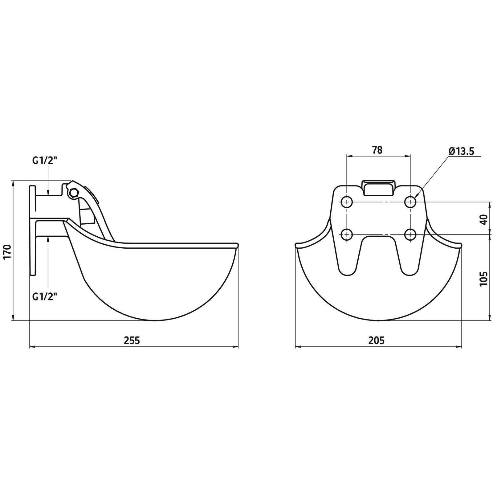 Sie erhalten hier ein Becken aus emailliertem Grauguss mit einer Druckzunge aus nicht rostendem Edelstahl. Anschlussmöglichkeiten von oben und unten G1/2". Geeignet für Wand- und Rohrmontage.