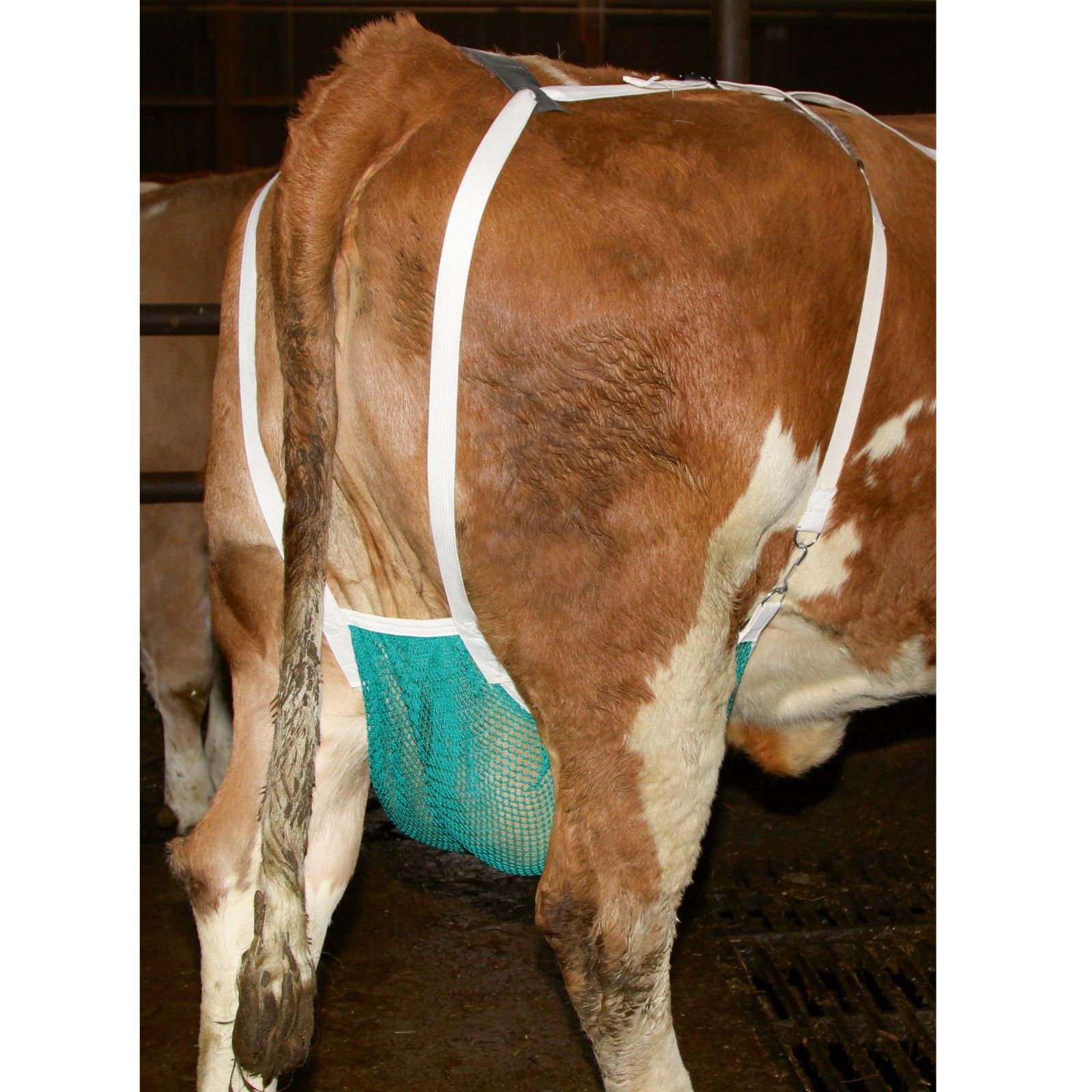 Der vielfach bewährte Zitzenschutz schützt zuverlässig gegen Verletzungen auf der Weide und in engen Ställen. Mit braunem Netz. Weiters ist dieses Netz eine wertvolle Hilfe bei der Mastitis-Behandlung. Beim Melken genügt das Öffnen eines Hakens.
