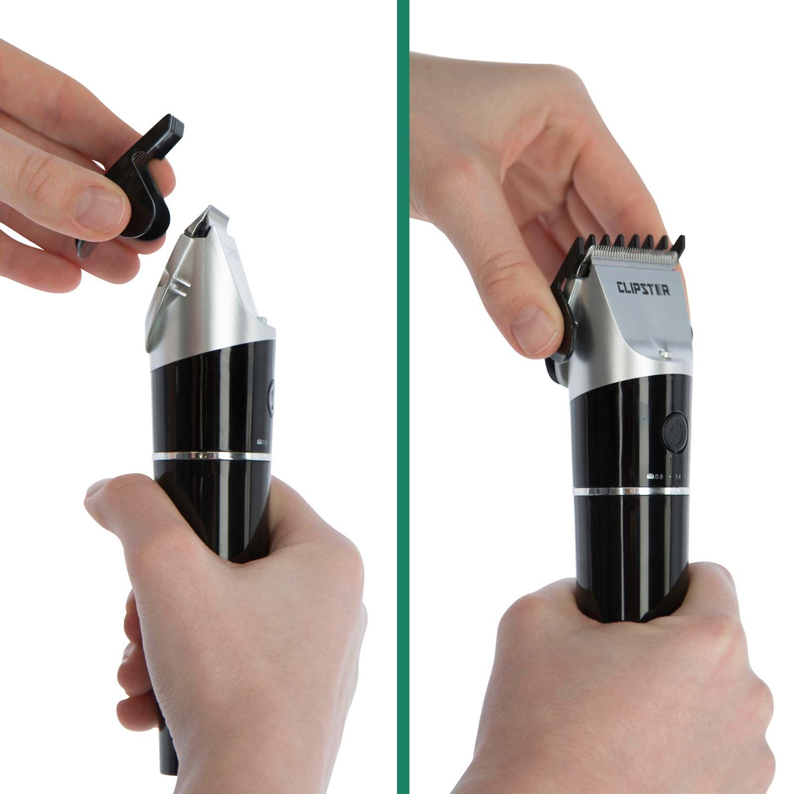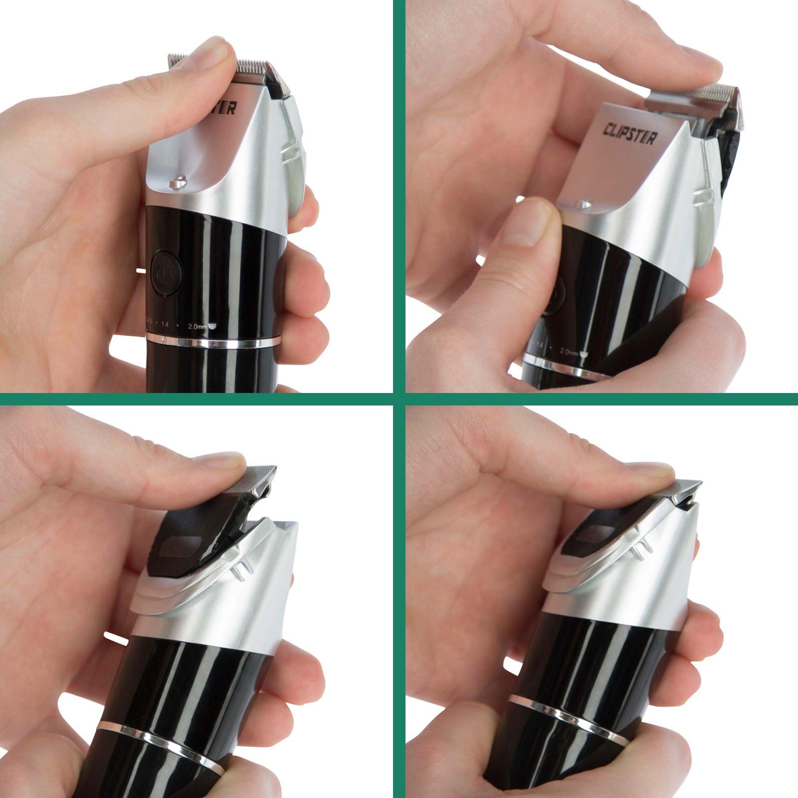 Die Schermaschine DeloX kann mit und ohne Netzkabel werden. Mit einer vollen Ladung kann die Schermaschine bis zu 300 Minuten ohne Unterbrechung scheren. Eine volle Ladung des Akkus dauert ebenfalls 300 Minuten. Mit gerade einmal 242 Gramm ist die Clipster DeloX ein wahres Leichtgewicht, dadurch kann man sehr gut auch länger Scheren. Der mitgelieferte Scherkopf schneidet präzise und lässt sich mit der im Gehäuse integrierten Schnittlängenverstellung 5-stufig sehr leicht verstellen von 0,8 - 2,0 mm. Die integrierte LED Leuchte sorgt für die perfekte Sicht bei der Arbeit und ist gerade an schwer zu erreichenden Stellen eine große Hilfe. Über den Ladezustand und die Akku Kapazität wird man bequem über die LED Anzeige an der Schermaschine informiert. Ebenso zeigt das Display an, wann der Scherkopf geölt werden sollte oder eine Reinigung notwendig ist.
