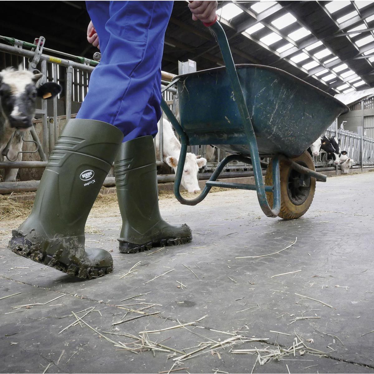 Der robuste StepliteX SolidGrip (StepliteX) Arbeitsstiefel mit breitem Schaft wurde speziell für die Landwirtschaft entwickelt. Das Modell garantiert ausgezeichnete Haftung, selbst auf den glattesten Oberflächen (SRC-zertifiziert) und bietet Isolierschutz bis -30 °C. Dank der besonders hohen Stahlkappe sind Sie bei Ihrer Arbeit zwischen Tieren und mit den unterschiedlichsten schweren oder spitzen Arbeitsgeräten gut geschützt. Zum Lieferumfang dieser Modelle gehört auch ein kostenloses Paar feuchtigkeitsabsorbierender Fußbetten. So bleiben Ihre Füße immer trocken.