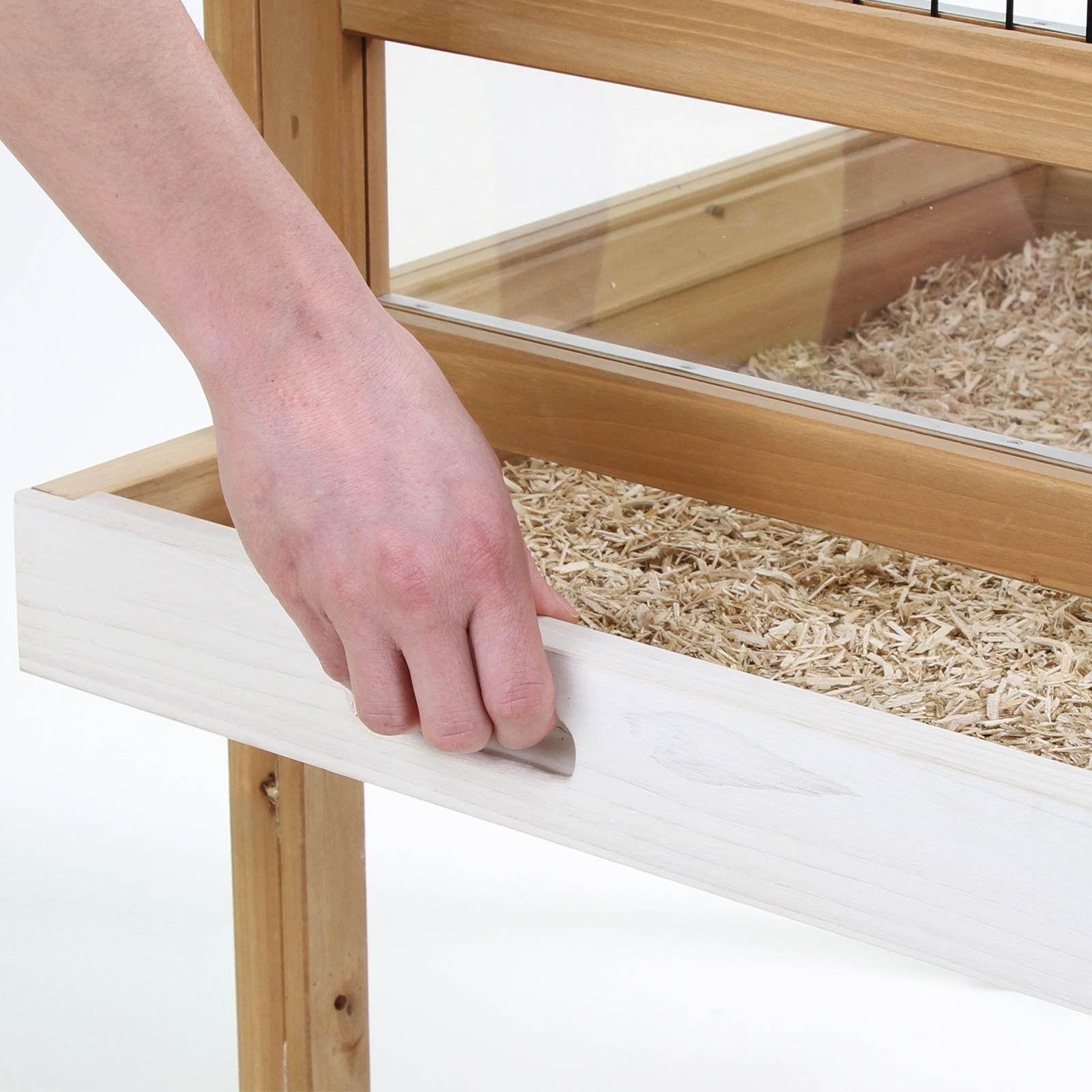 - Plexiglas für mehr Licht im Käfig und offene Sicht zum Tier
