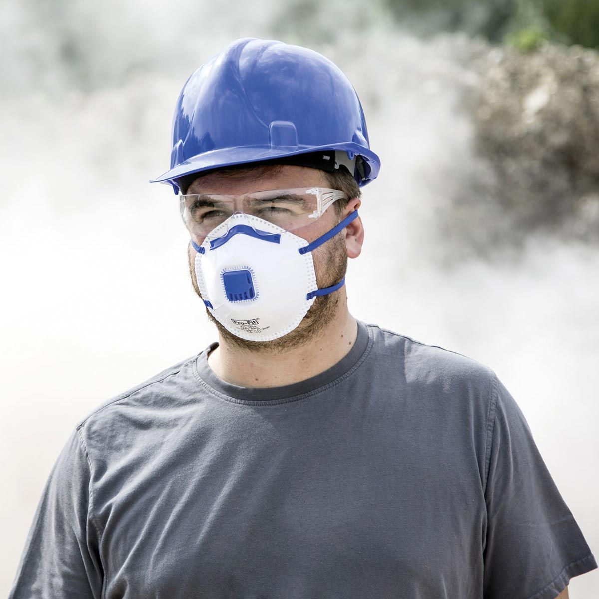Die hochwertige Feinstaubmaske FFP1 NR D mit Ventil schützt bis zum 4-fachen MAK-Wert (maximale Konzentration am Arbeitsplatz - Grenzwert).