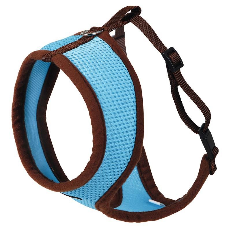 Sie erhalten hier ein weiches, softes Geschirr aus Mesh. Der Brustumfang ist stufenlos verstellbar, mit stabilem Klickverschluss. Sicher, stabil und trotzdem sehr leicht.