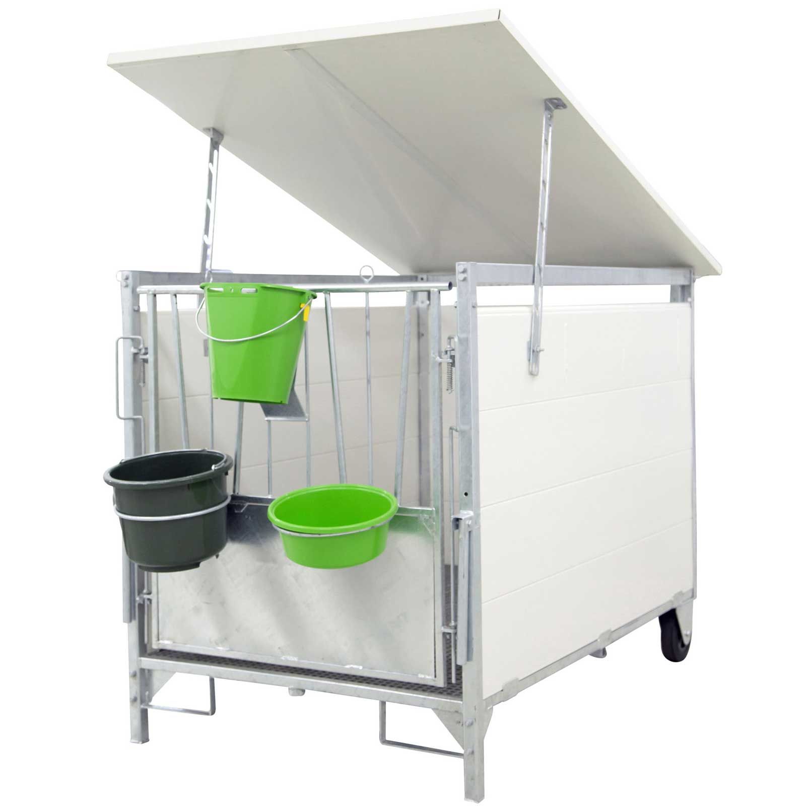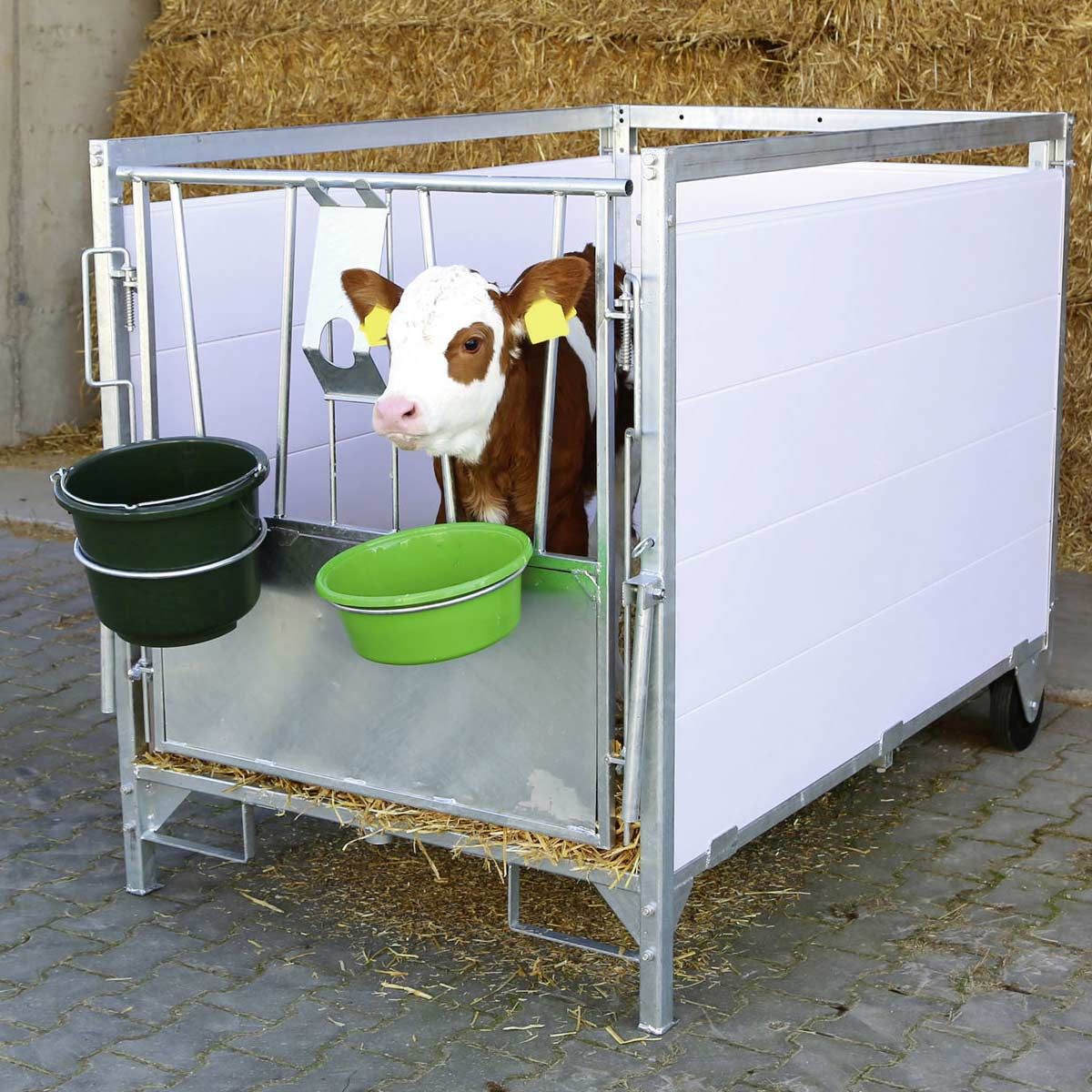 Die Kälberbox von Kerbl sorgt dafür, dass das Kalb viel frische Luft erhält, aber keiner Zugluft ausgesetzt wird. Ebenso wird es von schädlichen Krankheitskeimen abgeschirmt. Das Tier liegt in der Kälberbox nicht direkt auf dem Boden, sondern auf einem erhöhten Rost. Somit hat es das Kalb wärmer und trockener. Dank Seitenwänden aus PVC-Paneelen mit glatter Oberfläche sind die Boxen leicht zu reinigen.