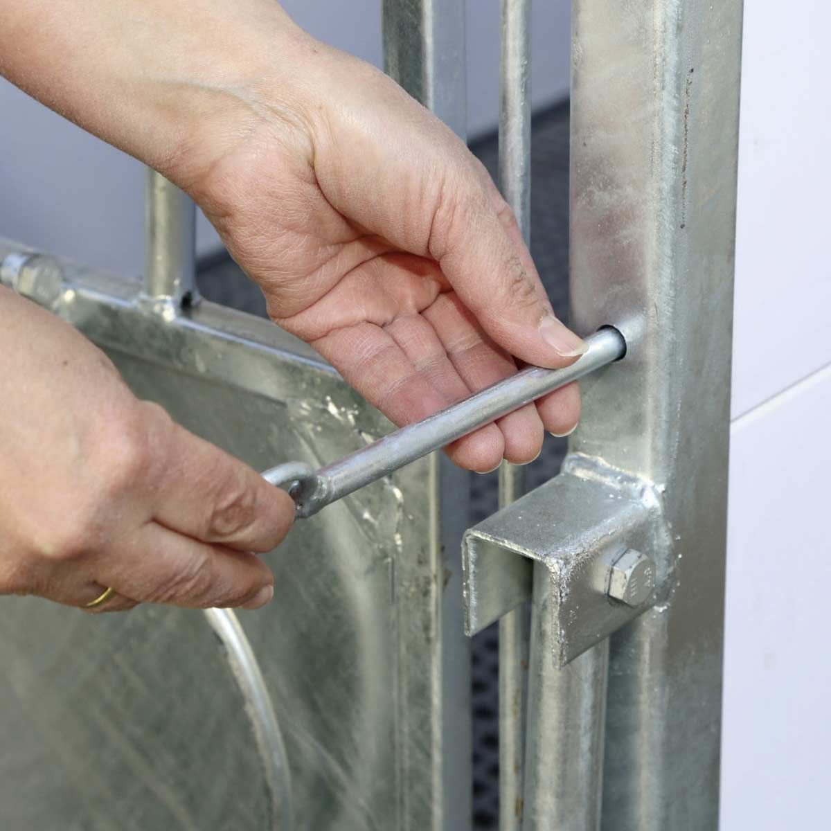 - Inkl. einer Tränkeeimerhalterung und zwei klappbaren Eimerhalterungen