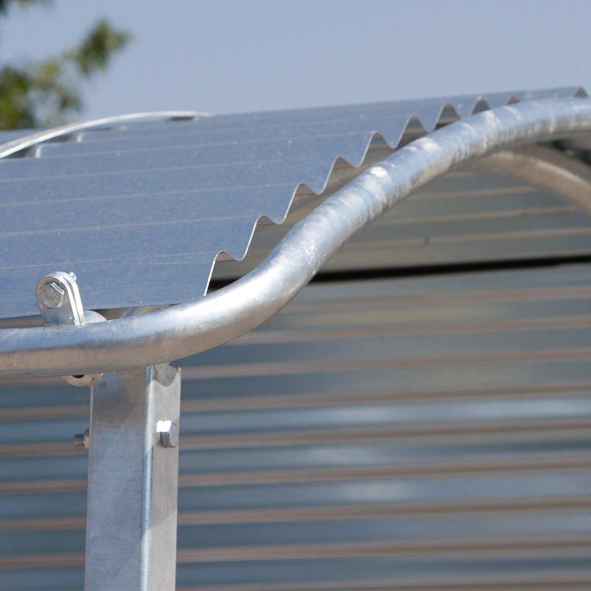 - Lieferung als Bausatz inkl. umlaufender Dachkantenschutz, Dreipunkt-Schutzbügel