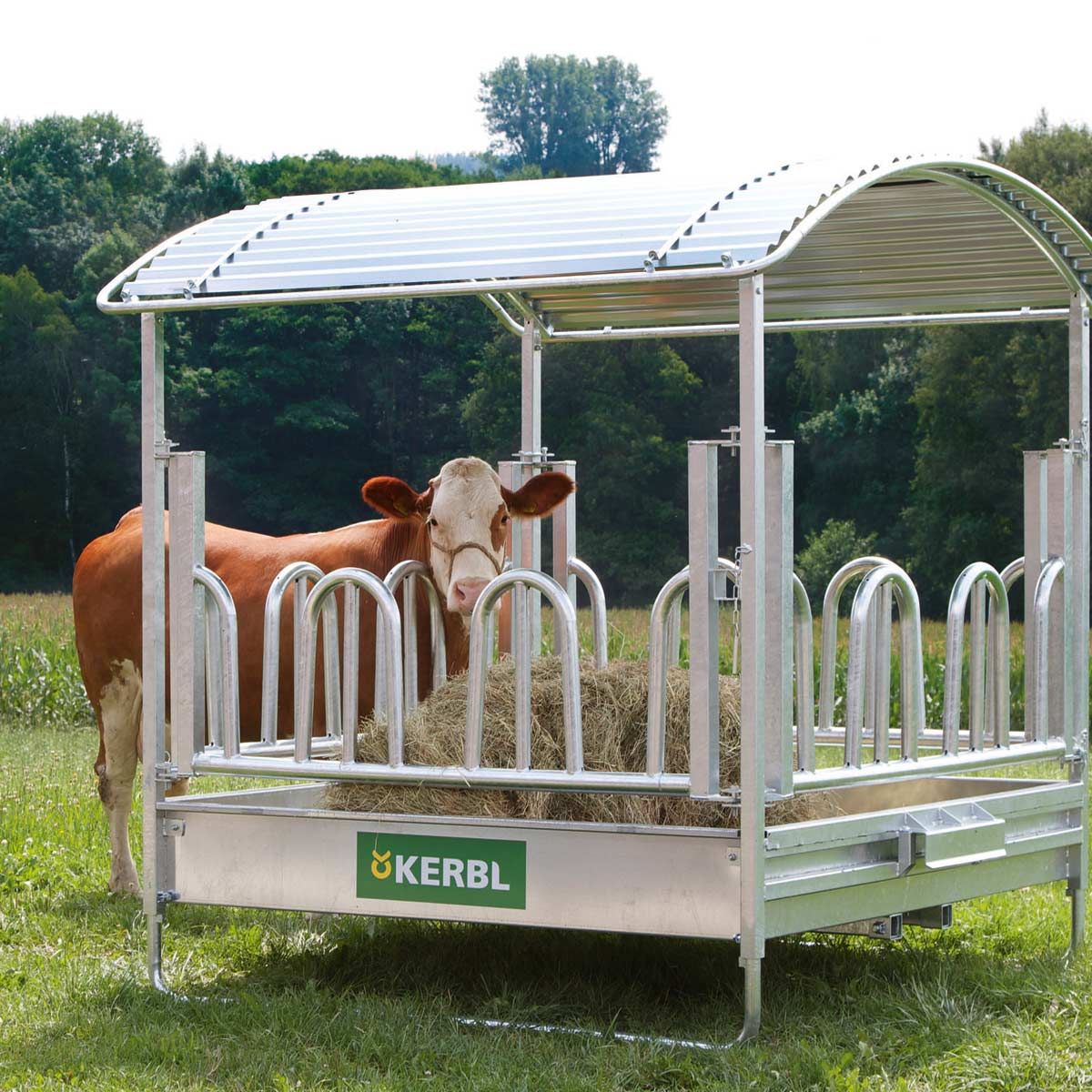 Viereckraufe mit Palisadenfressgitter - Rundballen-Raufe für Pferde & Rinder