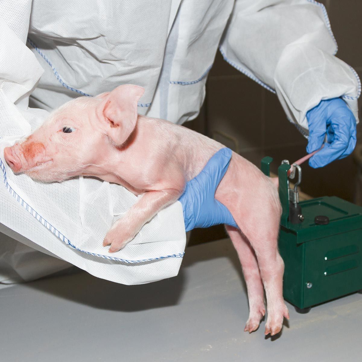 Beim Kupiervorgang werden die Schwänze der neugeborenen Ferkel abgebrannt und gleichzeitig die Gefäße verschlossen. Das sofortige Verschließen der Gefäße verhindert das Eindringen von Krankheitserregern. In der Regel belässt man die Schwänze etwa 2-3 cm lang. Der Hintergrund des Kupierens ist, dass Kannibalismus unter den Schweinen vemieden wird, welcher durch lange Schwänze in der Aufzuchtphase und Mast hervorgerufen werden kann.