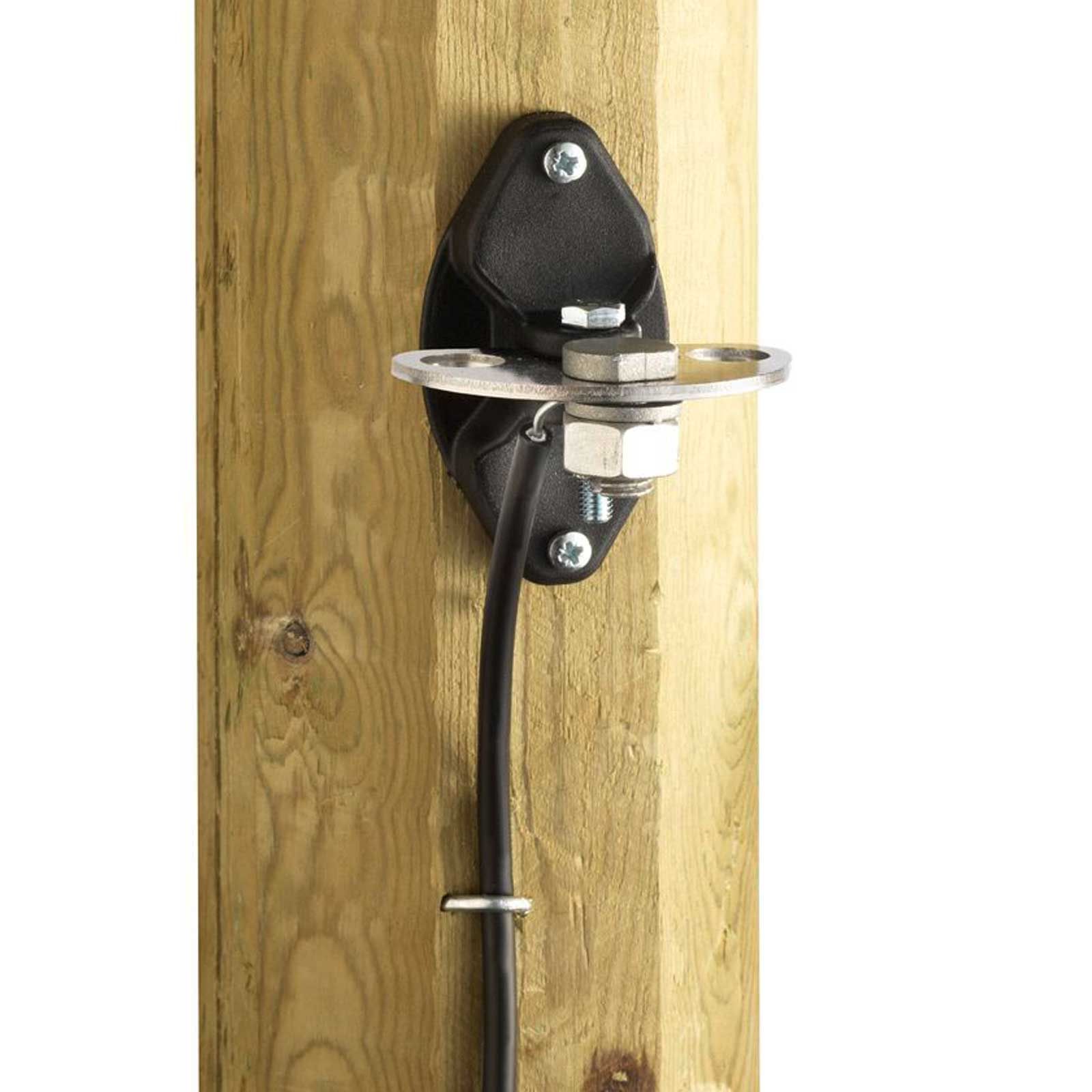 Der robuste Torgriffisolator von AKO ist vielseitig verwendbar und ganz einfach zu montieren. Die Metallplatten bestehen aus rostfreiem Edelstahl und der Kunststoff ist extra stabil, womit die Isolatoren sehr langlebig sind. Die Anschlussplatte bietet 3 Anschlussmöglichkeiten für z.B.: Torgriffe, Zaunzuleitungen und Leitermaterial. Schnelle und einfache Befestigung.