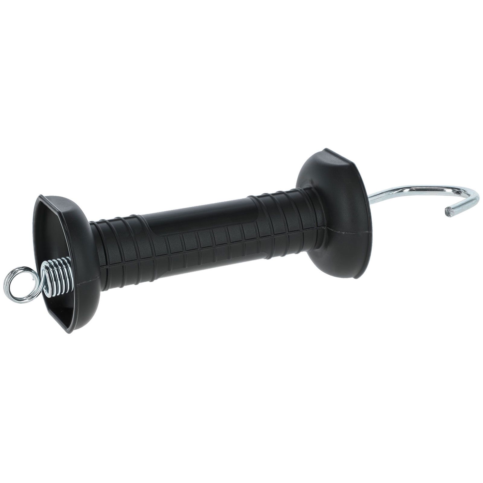 Mit unserem Torgriff in schwarz erwerben Sie ein besonders robustes Produkt für den sicheren Zugang zu Ihrer Weide. Der wuchtige Isolationsgriff aus UV-Licht stabilisiertem Spezial-Kunststoff besitzt hervorragende Isolationseigenschaften und besitzt neben der einfachen Zugfeder einen praktischen Haken.