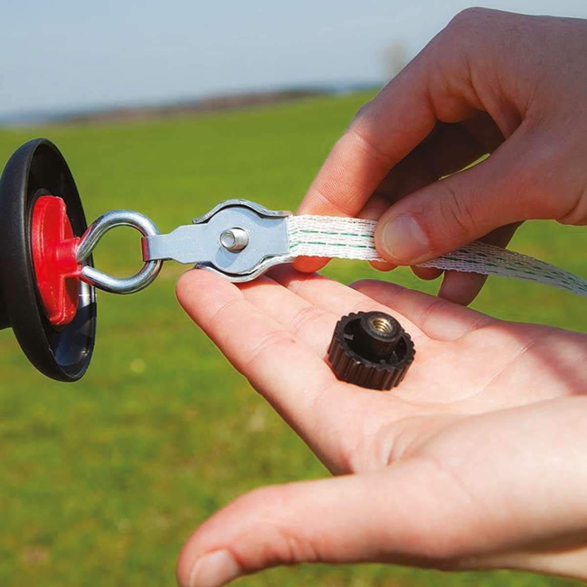 Der große Vorteil: man benötigt kein Werkzeug und kann mittels Fixierschraube mühelos eine optimale elektrische Verbindung herstellen. Auch zum Nachspannen eignet sich dieses System hervorragend. Diese Verbindung sorgt für eine optimale elektrische Leitfähigkeit und erhöht die Hütesicherheit Ihres elektrischen Weidezauns.