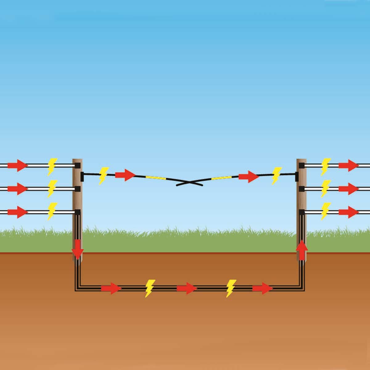 Die praktische Viehschranke Elektro Gate bietet mit seiner Länge von 6 m einen optimalen Ausbruchschutz bei breiten Wegen und Straßen. Das Set, bestehend aus zwei Stäben, zwei Schanieren und einem isolierten Erdkabel, kann leicht in bestehende Zaunanlagen eingesetzt werden. Die flexiblen Fiberglasstäbe sind mit elektrisch leitfähigem Gummi überzogen. Durch kleine leitende Graphitteilchen, die in das Material eingearbeitet sind, wird der Gummi leitend gemacht. Isolierte Handgriffe ermöglichen ein ungefährdetes Durchqueren von Fußgängern und Wanderern. Das physikalische Prinzip des Faradayschen Käfigs bewahrt den Fahrer im Fahrzeug vor elektrischen Schlägen. Die Viehschranke kann in beide Richtungen geöffnet werden und schließt selbstständig, die Stäbe können jedoch im geöffneten Zustand festgestellt werden.