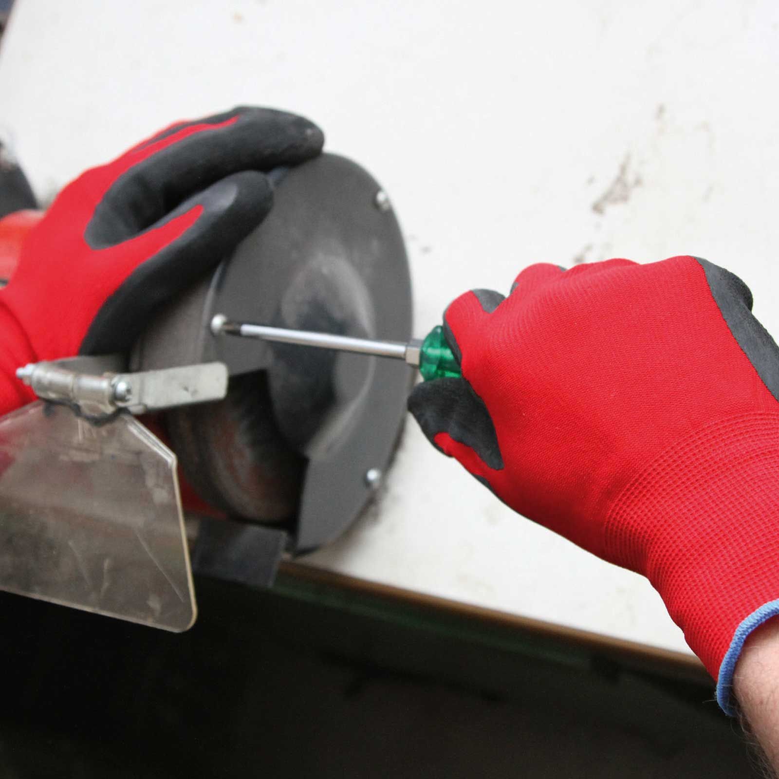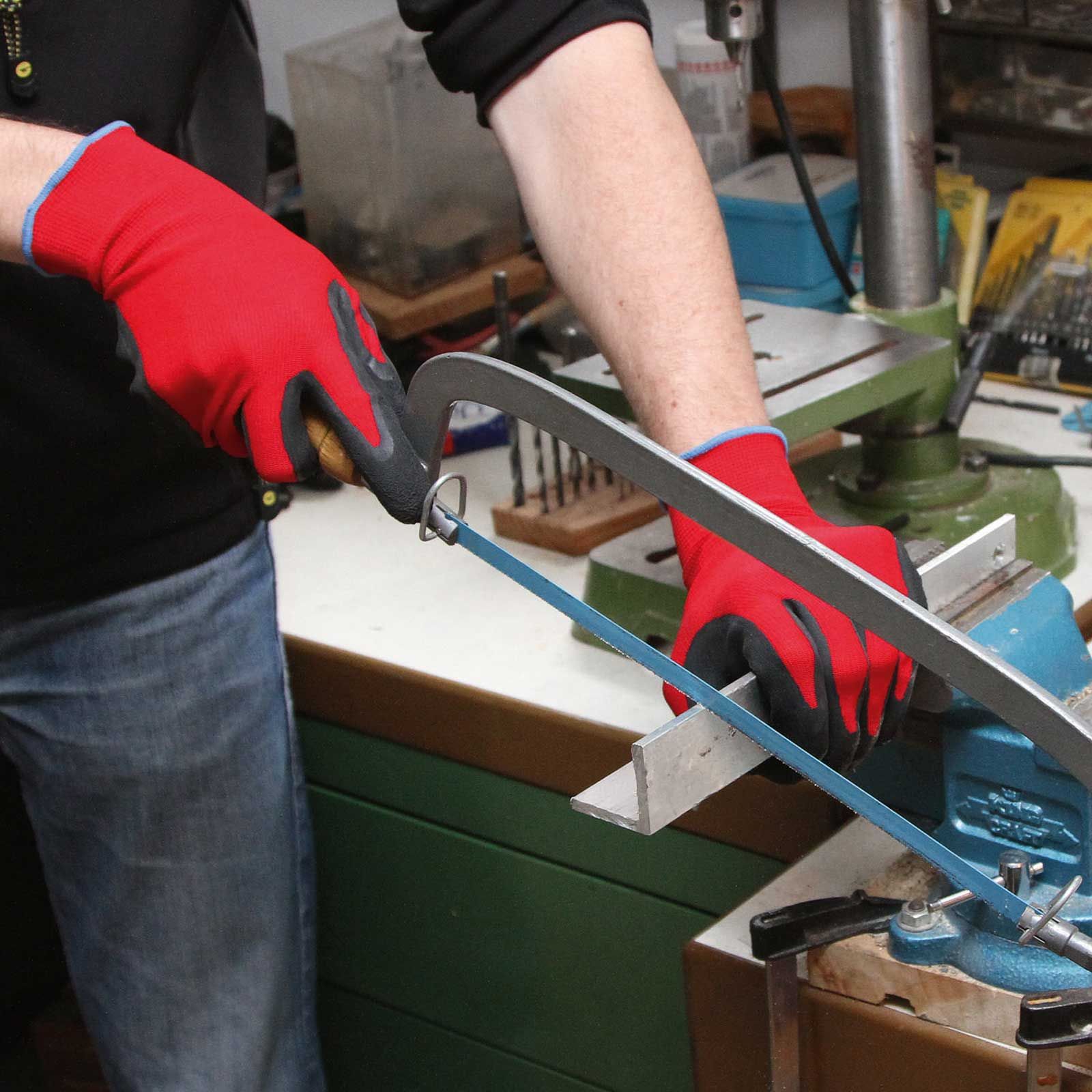 Die Arbeitshandschuhe mit weicher und griffiger Latexbeschichtung sorgen für einen guten Griff!