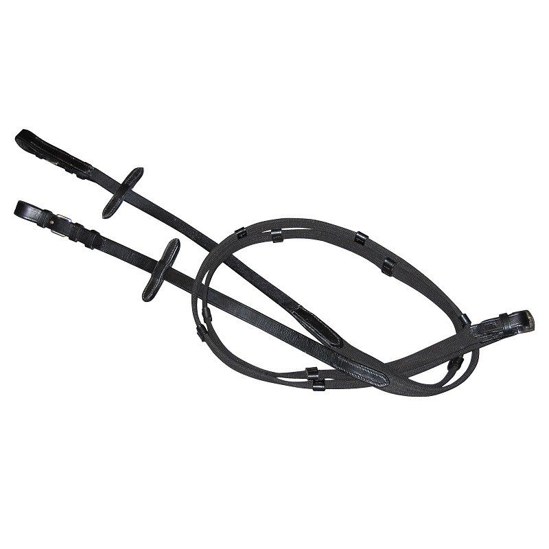 Dieser stabile Gurtzügel ist dein zuverlässiger Begleiter im Umgang mit deinem Pferd. Hochwertiges Leder an den Enden sorgt für Langlebigkeit und einen angenehmen Griff. Du wirst die solide Verarbeitung zu schätzen wissen, die für eine lange Lebensdauer sorgt. Mit dem integrierten Martingalstopper bietet er dir außerdem zusätzliche Sicherheit während des Reitens.