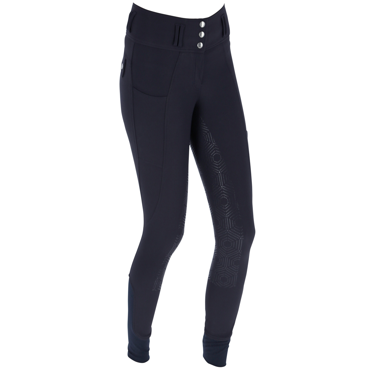 Elegante HighWaist Reithose mit stylischen Knöpfen und praktischer seitlicher Handytasche.