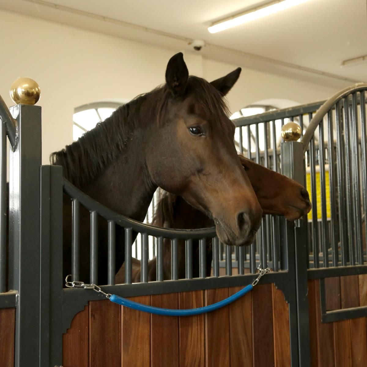 Die Deckenhalterung für Pferdedecken sorgt für Ordnung in Ihrem Stall.