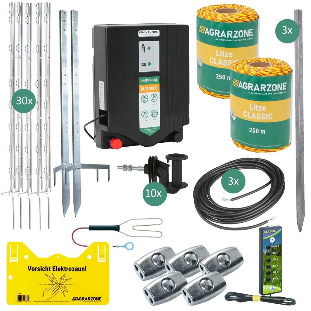 Agrarzone Ziegenzaun Komplett-Set - 230 V / 12 V Weidezaungerät mit Litze für alle Ziegenarten