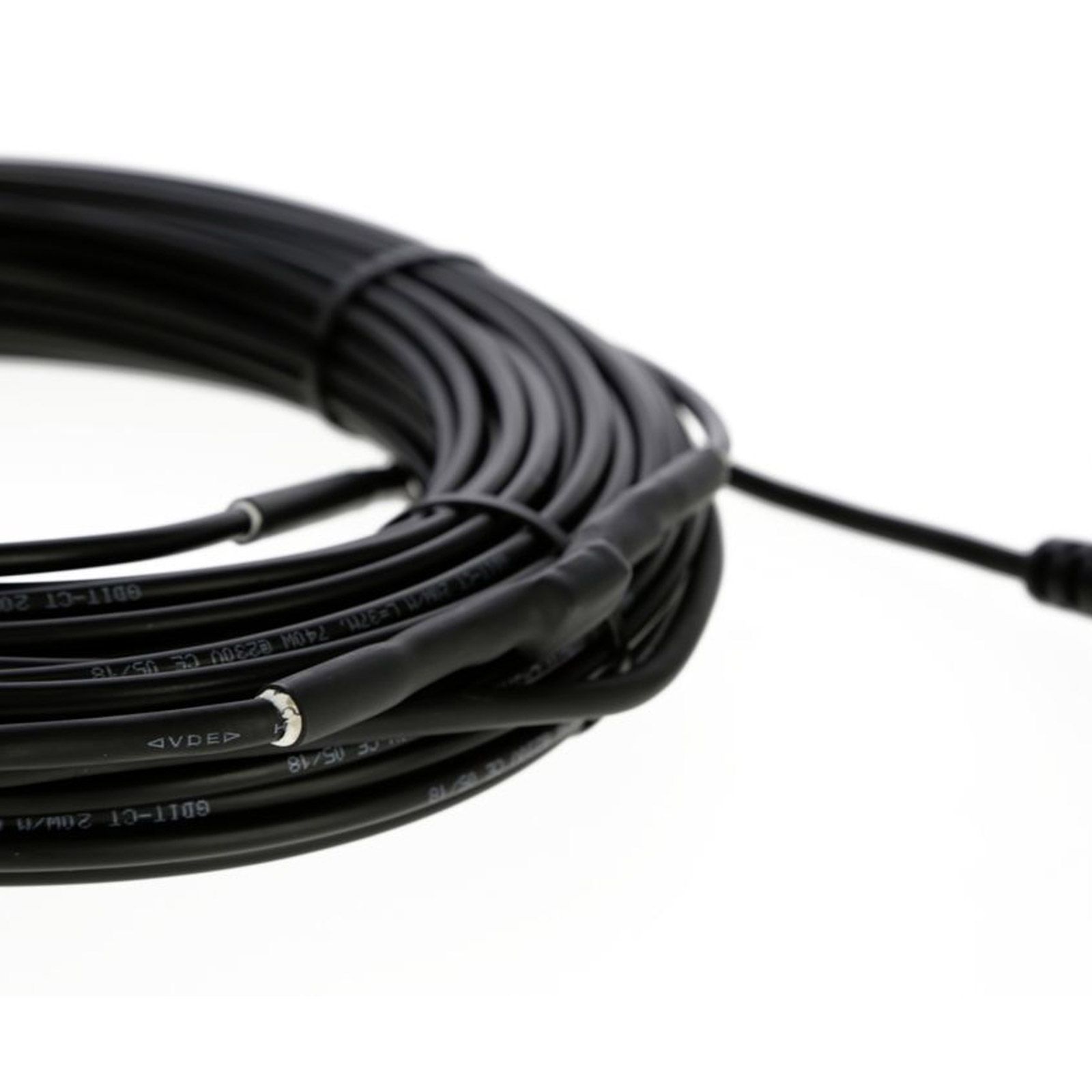Das steckerfertige, für Dachrinnen- und Rohrleitungen entwickelte Heizkabel erfüllt die Anforderungen an die Festigkeitsklasse M2 nach IEC60800:2009, um Dachrinnen und Rohrleitungen sicher frostfrei zu halten. Durch die hohe Heizleistung von 20 Watt pro Meter hält das Heizkabel Dachrinnen, Fallrohre und Rohrleitungen auch bei sehr niedrigen Temperaturen frostfrei. Der integrierte Temperaturschalter schaltet zuverlässig das Heizkabel bei einer Temperatur von +3 °C ein und bei +12 °C wieder aus.