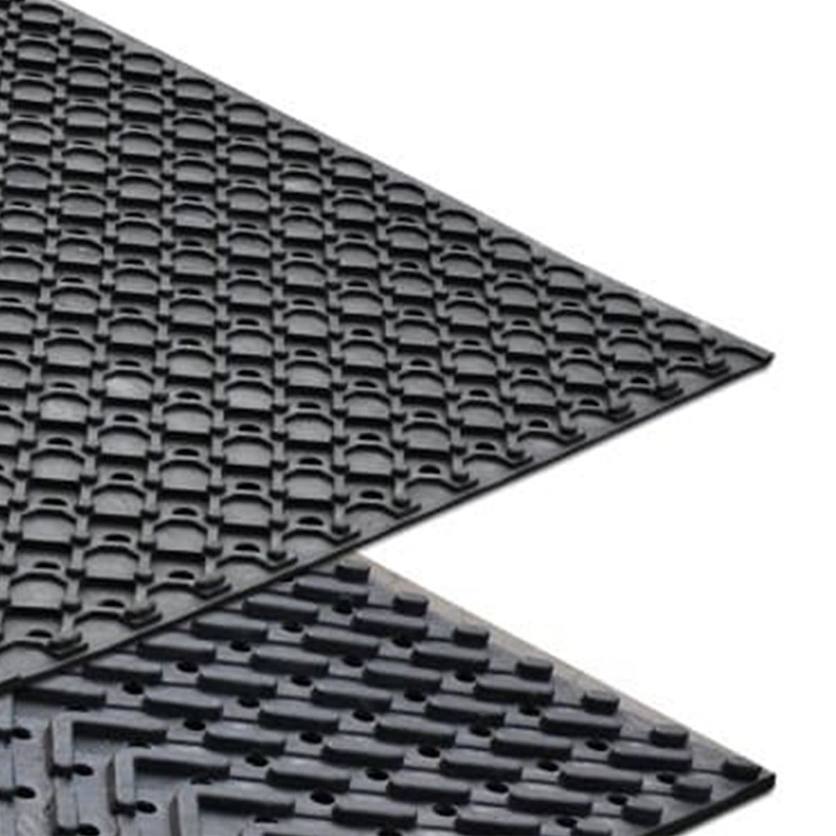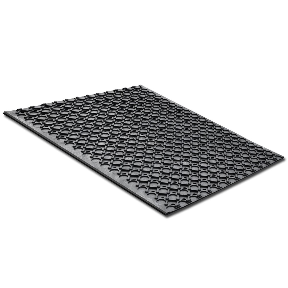 Die spezielle Anordnung der Drainagekanäle leitet überschüssiges Wasser effizient ab und schafft so einen matschfreien Auslauf für Deine Pferde. Die Lochmatte ist perfekt für alle, die ihre Böden optimal gestalten möchten, ohne sie aufwendig pflastern oder betonieren zu müssen. Sie kann leicht im „Stoß an Stoß“-Verfahren verlegt werden und ist einfach zuschneidbar. Egal ob für Reitplätze, Stallmatten oder Werkstattböden, die Einsatzmöglichkeiten sind vielseitig. Zudem vermindert die Matte die Rutschgefahr und sorgt für eine gute Haftung für Fußgänger, Tiere und Fahrzeuge. Sie bietet ein tritt-, schall- und wärmedämmendes Luftpolster, das die Belastung gleichmäßig verteilt und Deine Gelenke schont.