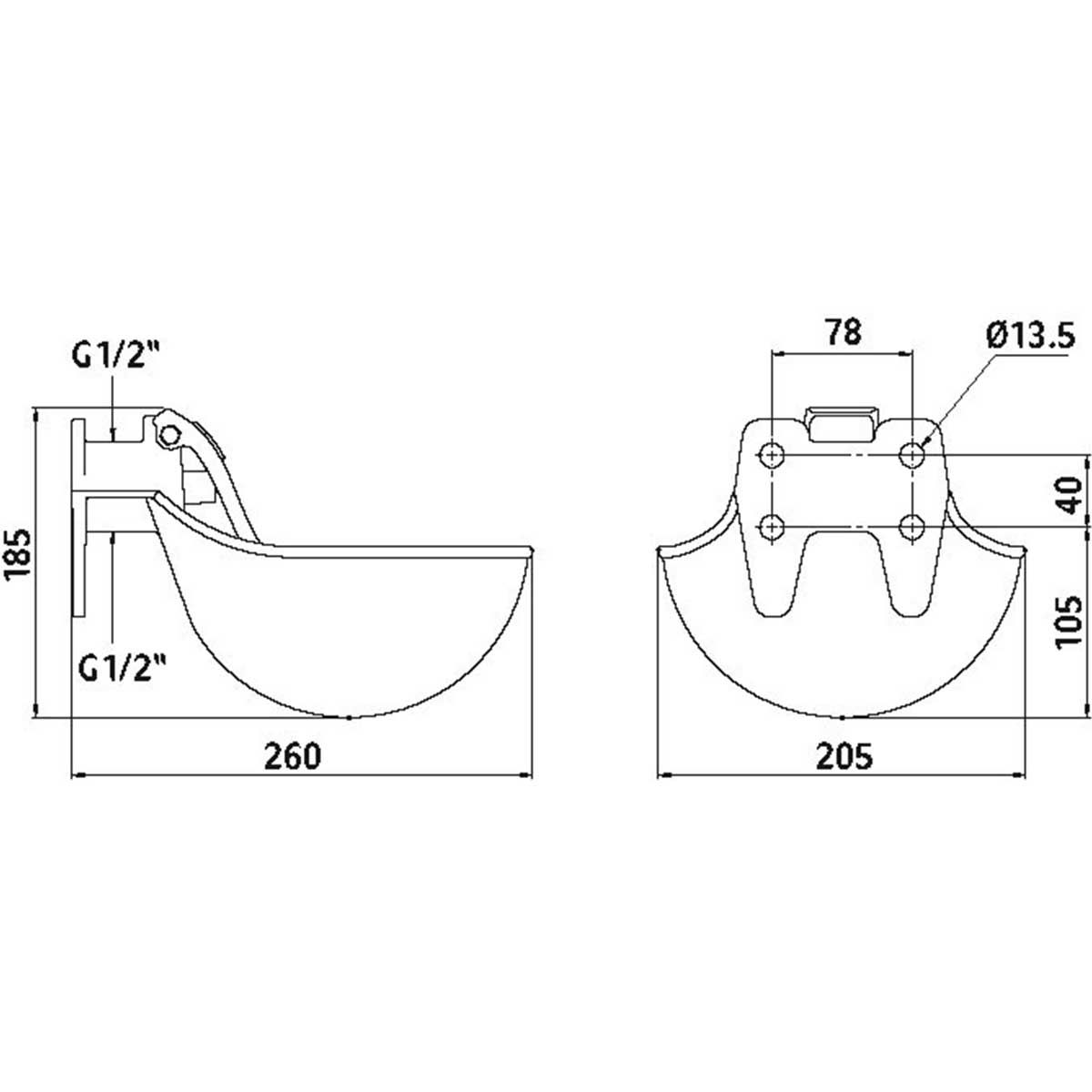 Dieses Tränkebecken hat eine große Trinkschale mit Druckzunge aus Grauguss.
