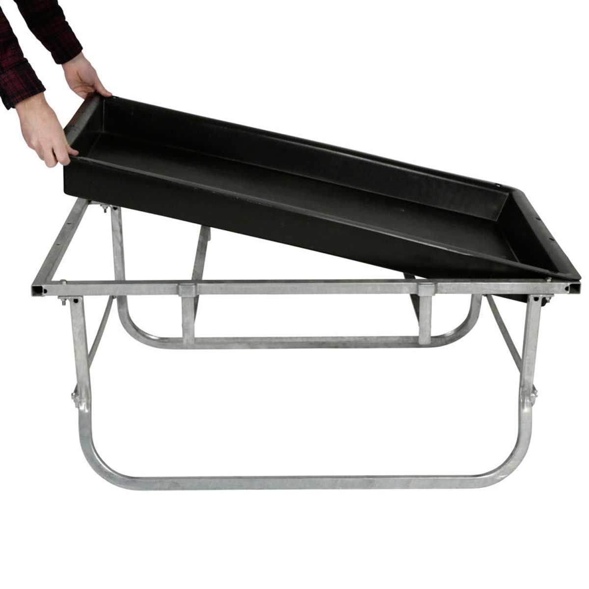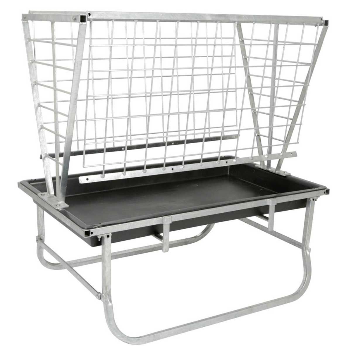 Die Kerbl Heuraufe ist für alle mittelgroßen Tiere wie Schafe, Ziegen, Wild oder Kälber und für kleine Ballen oder loses Heu geeignet. Die Futterraufe ist zusätzlich mit einem Kraftfuttertrog ausgestattet.