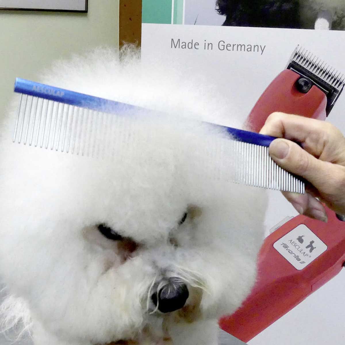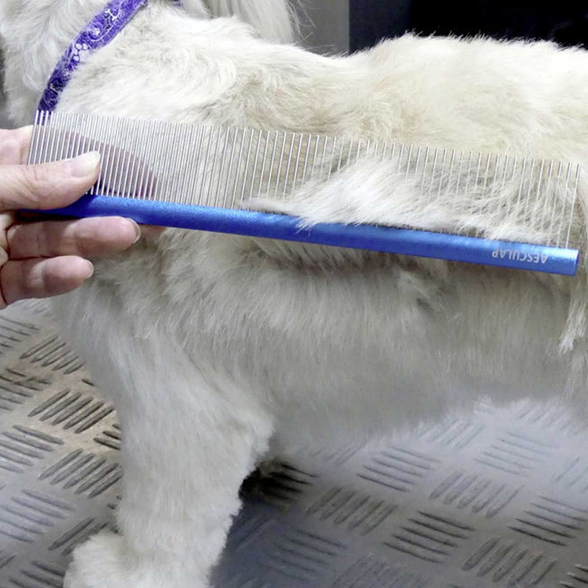 Der Fellkamm eignet sich perfekt zum Ausbürsten und Lösen leichter Verfilzungen und Knoten im Fell sowie zur Vor- und Nachbereitung einer Schur. Dieser Aesculap Edelstahl Kamm eignet sich für Hunde und Katzen aller Größen und Felllängen. Durch die Verchromung und den abgerundeten Zinken ist dieser Kamm besonders fellschonend.