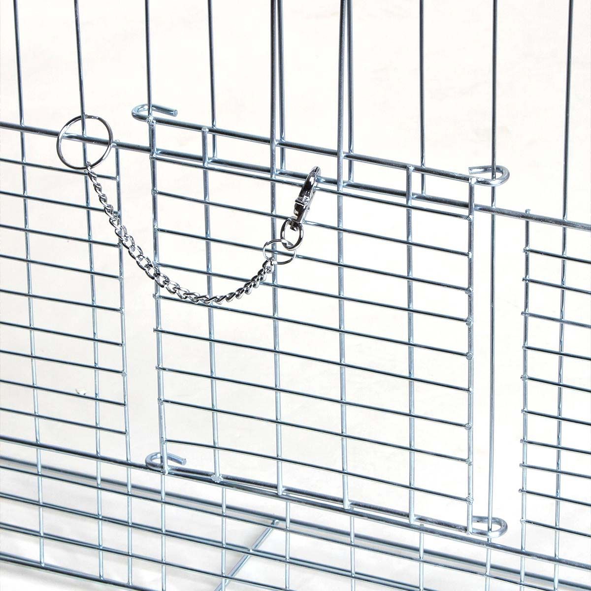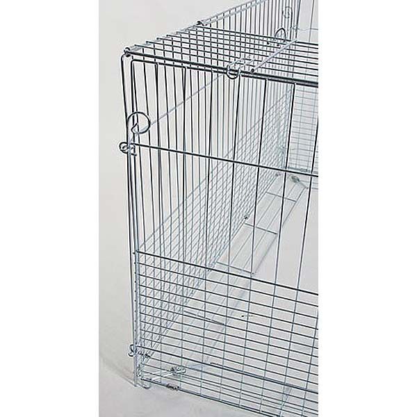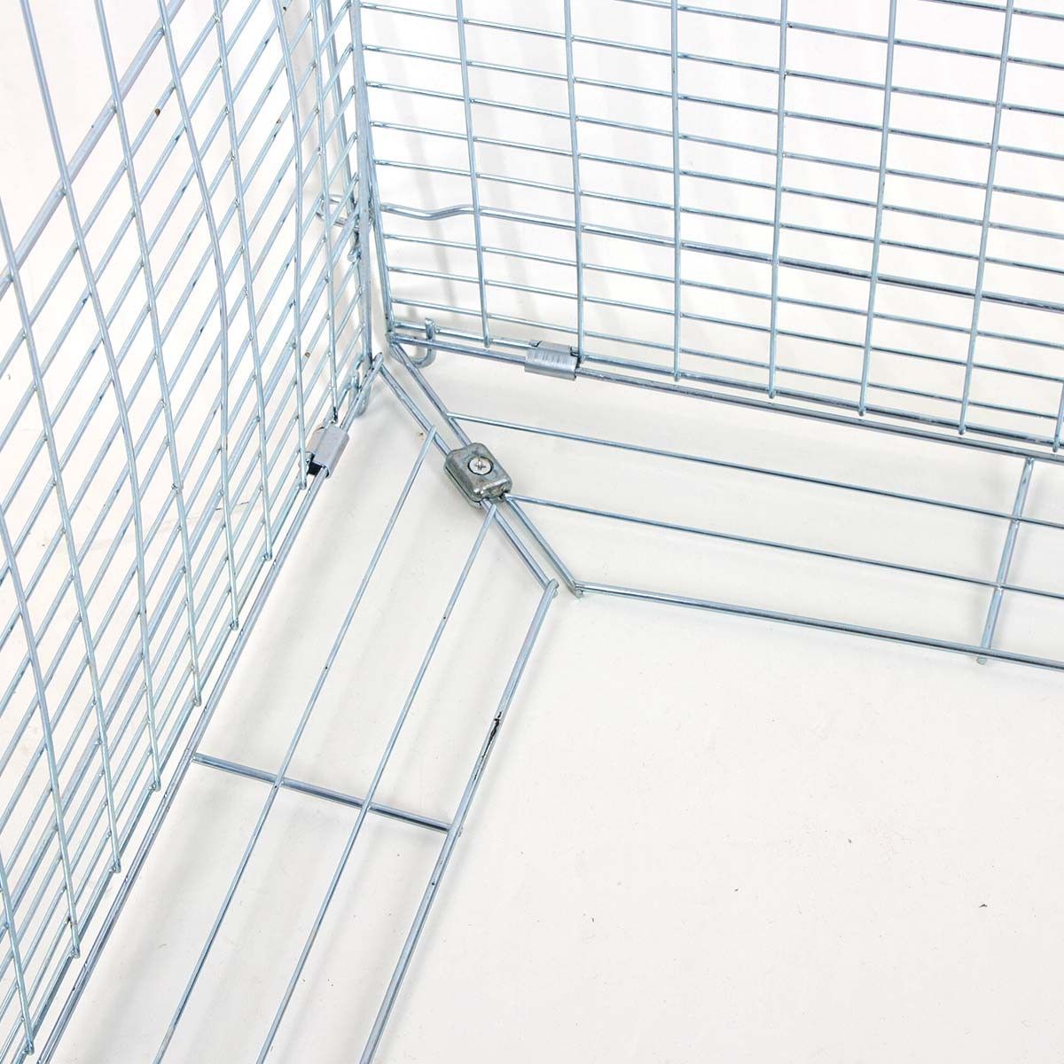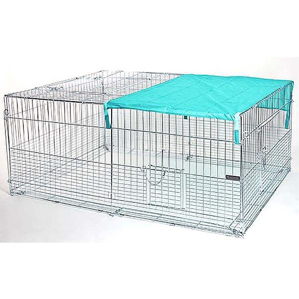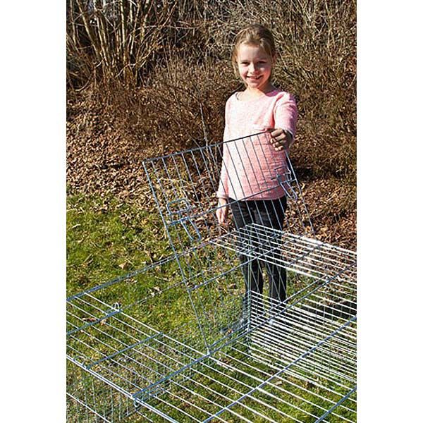 Bei diesem universell einsetzbaren Freilaufgehege verhindert die Gitterabdeckung das Hinausspringen und bietet optimalen Schutz vor ungebetenen Gästen, wie z. B. Greifvögel, Katzen oder Marder. Der engmaschige Bereich im unteren verhindert ein ungewolltes herausschlüpfen von kleineren Tieren.