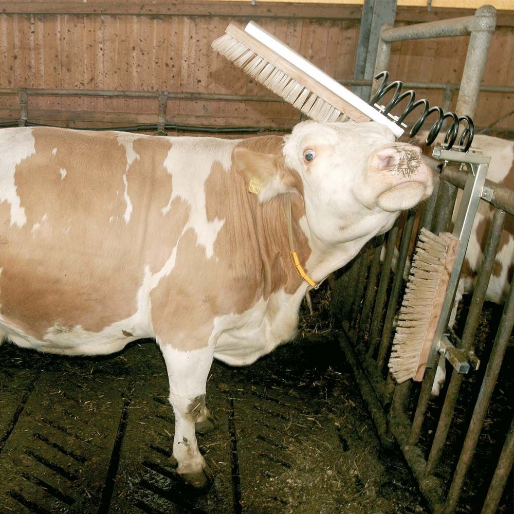 Kühe haben das Bedürfnis sich zu scheuern und zu kratzen. Dadurch reinigen sie sich selbst und befreien sich von Parasiten, Flechten und Milben. Das Bürsten stimuliert und regt den Blutkreislauf an. Der Einsatz einer Kuhbürste ist ein wesentlicher Beitrag zum Wohlergehen der Kuh und somit eine Grundvoraussetzung für eine hohe Milchleistung. Die Tiere werden ruhiger, ihr Wohlbefinden wird gesteigert.