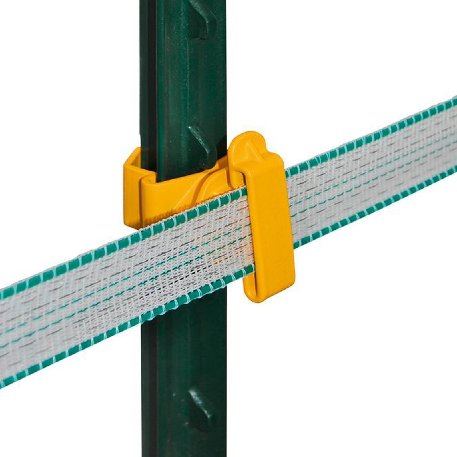 T-Post-Band-Isolator für Weidezaunbänder bis 50 mm mit praktischem Klippverschluss.