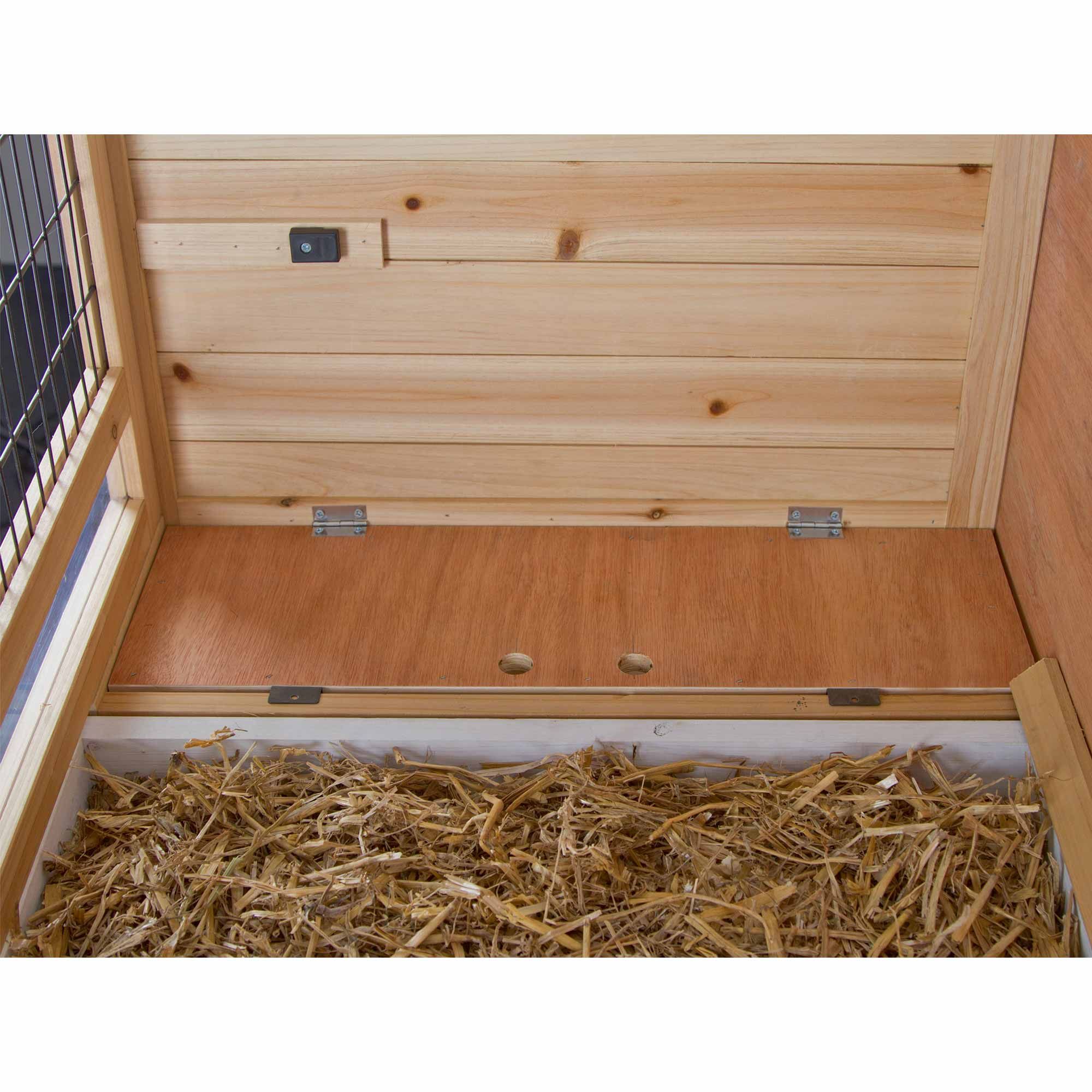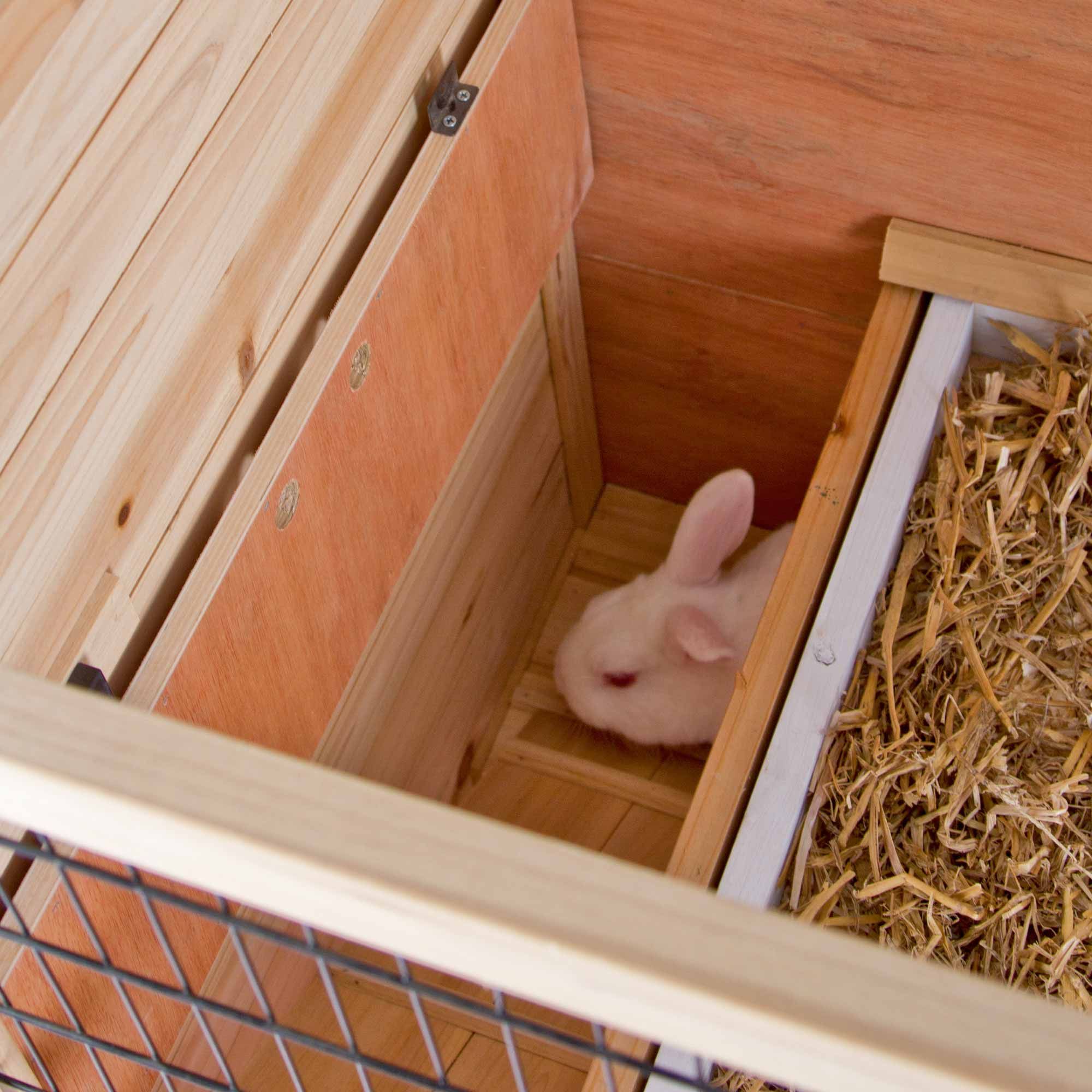 Moderner Kleintierstall mit Verbindungstreppe und Plexiglas für offene Sicht zum Tier.